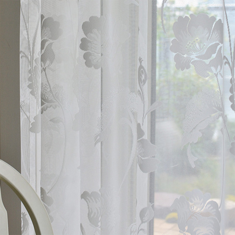 Les rideaux en dentelle de tulle jacquard Eden blanc laissent entrer beaucoup de lumière naturelle dans la pièce tout en offrant intimité et une touche de classe. Les magnifiques détails des fleurs et des feuilles et le tissu raffiné offrent un aspect luxueux.