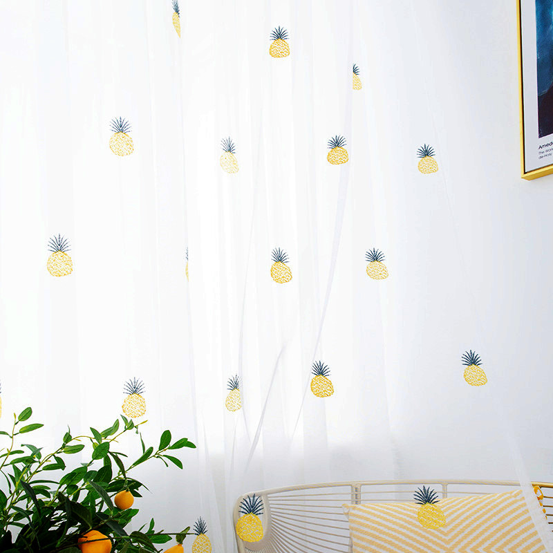 Le rideau voilage Calypso, orné de broderies représentant des ananas tropicaux disposés de manière ludique, vous plongera instantanément dans l'ambiance estivale. Ses textures riches et ses broderies raffinées vous feront rêver aux journées ensoleillées sur la plage.