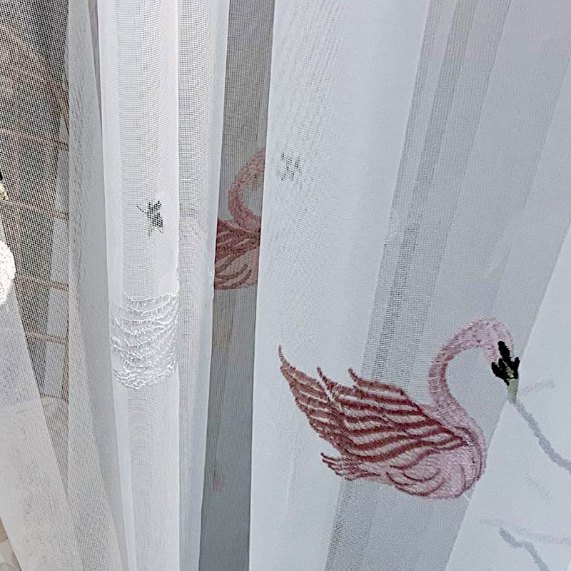 Ces superbes rideaux Royalty laissent passer beaucoup de lumière et donnent l’impression que les cygnes brodés nagent gracieusement sur leur surface. La magnifique bordure festonnée en bas de ces rideaux luxueux les finit parfaitement et apportera une touche de classe à n’importe quelle pièce. Ces rideaux voilages légers sont disponibles avec un motif cygne rose ou cygne blanc pour s’harmoniser avec tout intérieur. Les rideaux voilages cygne Royalty sont fabriqués sur mesure selon les dimensions exactes de vos fenêtres et sont disponibles avec différents styles de fixation - œillets, pattes de fixation, plissé simple, plissé double, plissé biscuité ou coulisse à bâton.Des volées d’oiseaux inspirent la tendance actuelle en matière de décoration intérieure où ils s’envolent sur les tissus et dans votre maison. Découvrez nos superbes rideaux voilages à motifs d’oiseaux.