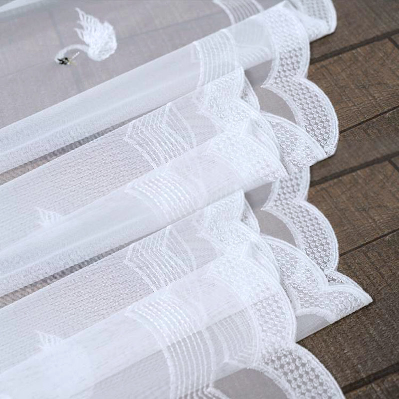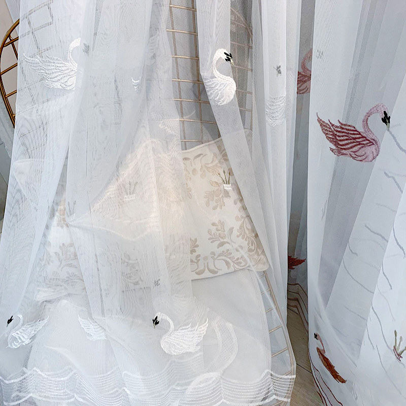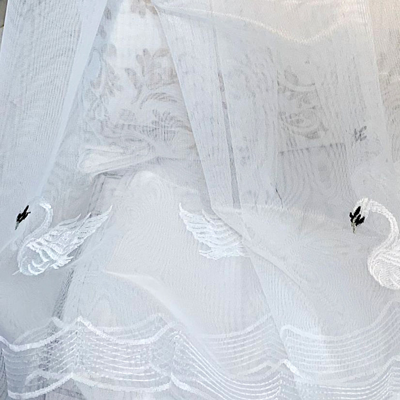 Ces magnifiques rideaux Royalty laissent passer beaucoup de lumière et donnent l’impression que les cygnes brodés nagent gracieusement sur leur surface. La belle bordure festonnée en bas de ces rideaux luxueux les parfait et apportera une touche de classe à n’importe quelle pièce. Ces rideaux voilage transparents sont disponibles en cygne blanc ou avec un motif de cygnes roses pour s’harmoniser avec n’importe quelle pièce.