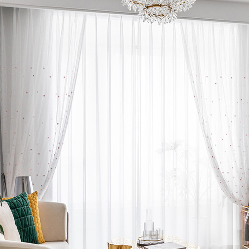 Les superbes rideaux voilages roses Amore brodés apportent la beauté du printemps chez vous toute l'année. Les délicats pétales de fleurs qui tombent flottent sans effort sur les magnifiques rideaux et instaurent un sentiment de calme et de sérénité. Le tissu raffiné offre un aspect luxueux et le voile transparent laisse entrer beaucoup de lumière naturelle.Nos rideaux voilages sur mesure sont adaptés à vos besoins exacts en matière de fenêtres et disponibles dans un choix de styles de tête - œillets, patte de fixation, plissé simple, plissé confectionné, plissé pincé, plissé inversé, poche à tringle et rideau à vague.Découvrez comment les rideaux voilages roses peuvent moderniser n'importe quelle pièce. *Veuillez noter : En raison de la bordure festonnée sur ces rideaux, si vous choisissez d'ajouter des poids, veuillez nous indiquer si vous souhaitez conserver la bordure festonnée ou la faire couper droite.