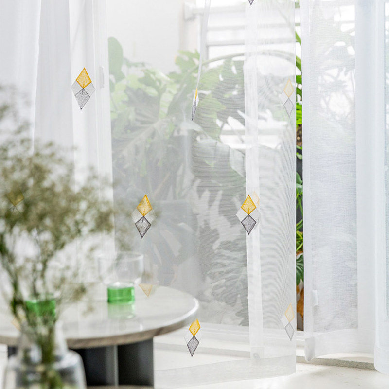 Les rideaux voilages Windsor à motifs diamantés tricolores, simples mais saisissants, sont élégants et laissent entrer beaucoup de lumière naturelle dans la pièce. Ces rideaux voilages originaux sont des solutions de décoration de fenêtres très économiques. Nos rideaux voilages sur mesure sont créés selon les dimensions exactes de vos fenêtres et sont disponibles avec différents styles de tête : œillets, plis crayon, plis feston, double plis, pattelet, poche à tringle. Découvrez comment les rideaux voilages peuvent moderniser n'importe quelle pièce.
