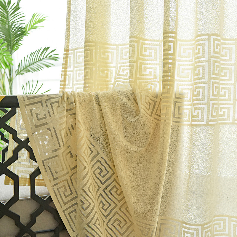 Simple, subtil et naturel – ce design élégant en forme de vague s’inspire du motif grec, le symbole le plus important de la Grèce antique, incarnant le flux éternel de l’amour et de l’amitié. Ces rideaux en tulle jaune à motif grec jacquard sont confectionnés dans un tissu vaporeux, délicat et agréable au toucher. Nos rideaux en tulle sur mesure sont méticuleusement réalisés pour répondre à vos préférences spécifiques. Ils sont disponibles dans une variété de styles de plis pour s’adapter à vos goûts, notamment le galon plissé, à œillets, le plis marguerite, le plis tailleur, le plis creux inversé, à pattes, à coulisse, à poches, à vagues et les rideaux pour portes. Commandez des rideaux, des embrasses et des coussins assortis pour sublimer l’ensemble de la pièce. Découvrez comment ces rideaux en tulle à motifs géométriques peuvent moderniser n’importe quelle pièce.
