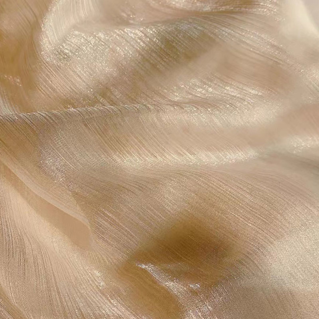 Doté d’une texture verticale distinctive, ce somptueux voile en organza rayé apportera profondeur et mouvement à tout espace.