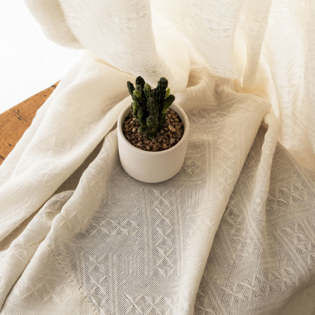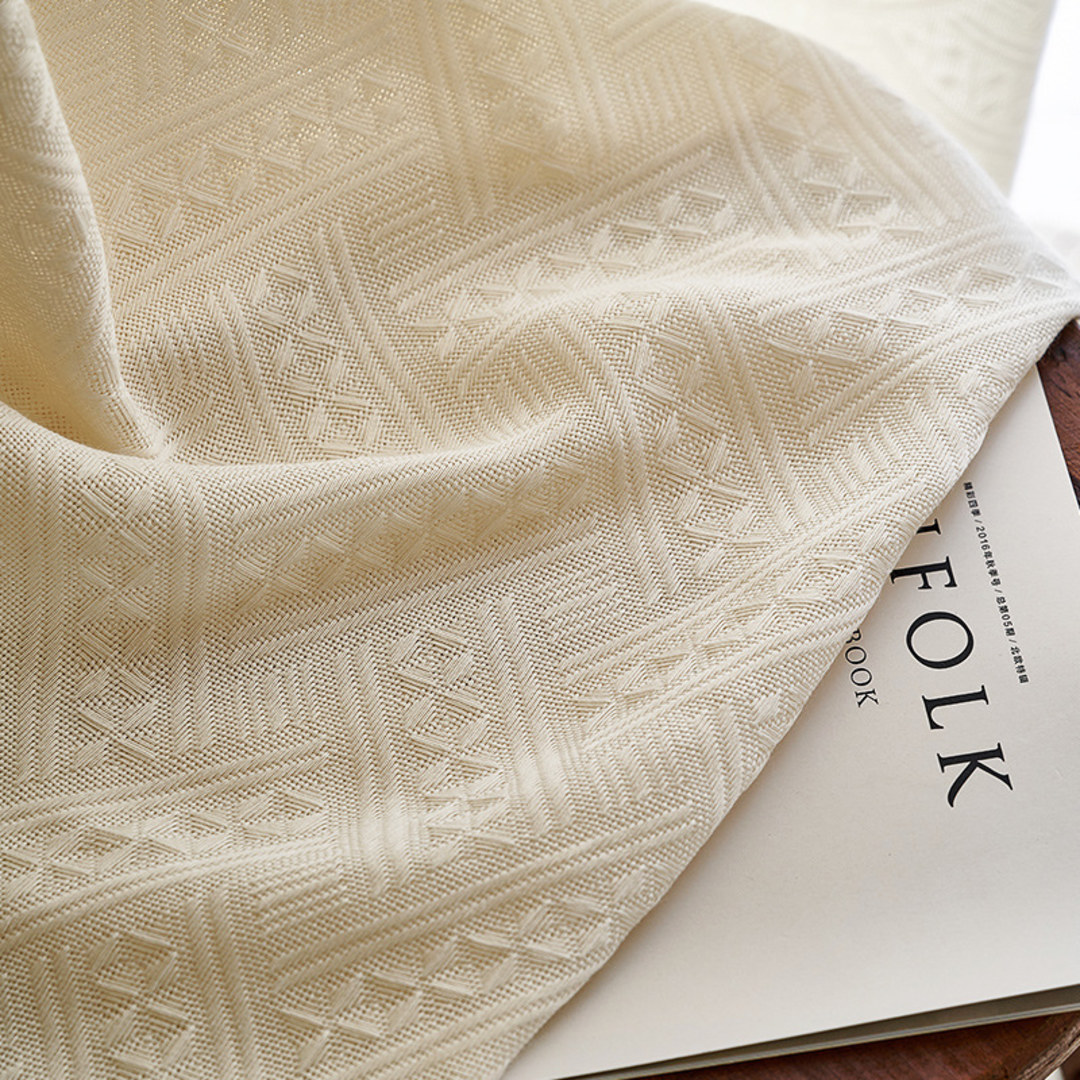 Ces rideaux en coton tissé tricoté, semi-transparents et épais, présentent des motifs complexes et une belle couleur crème naturelle, apportant une ambiance chaleureuse à votre intérieur.