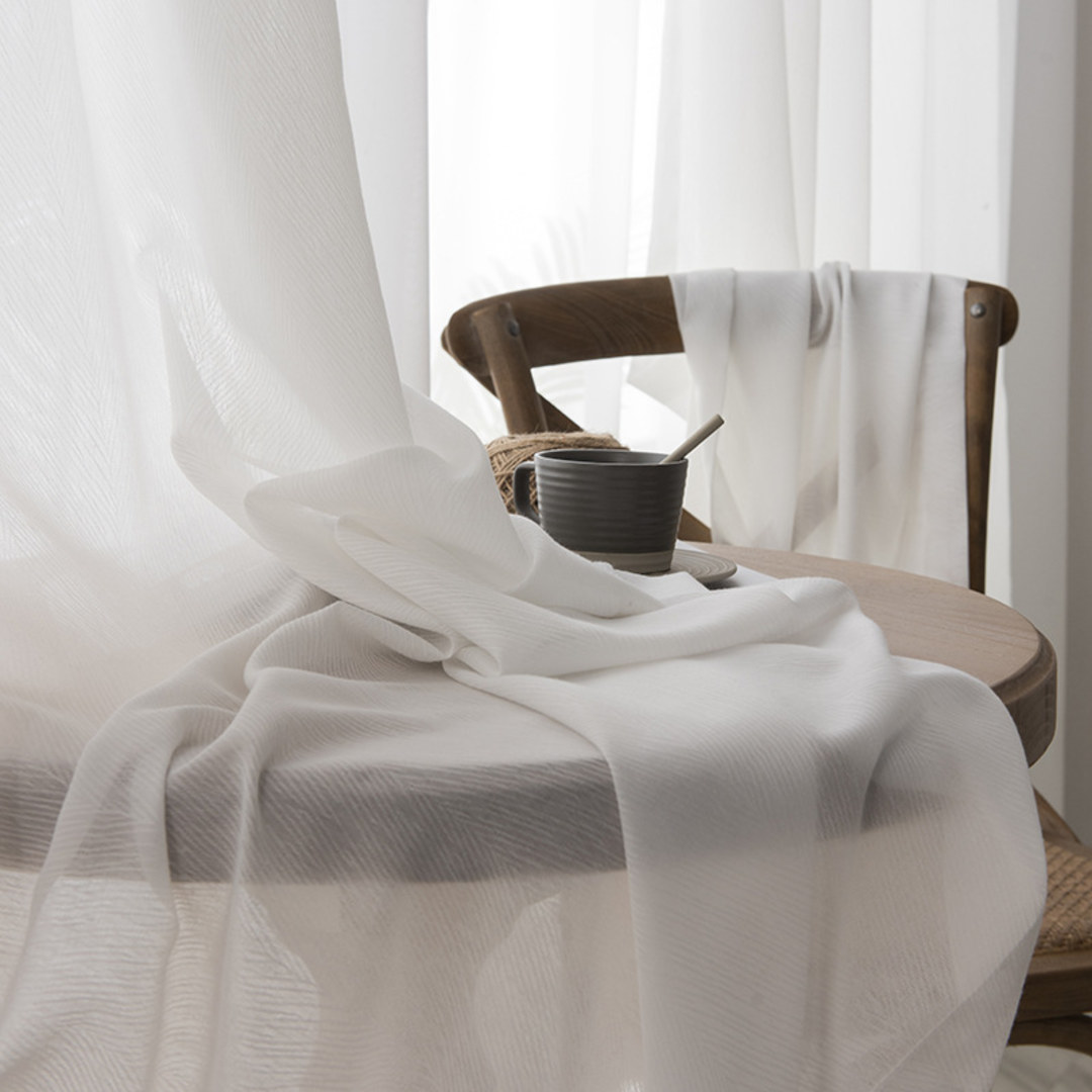 Ces rideaux voilages extraordinaires utilisent des textures riches pour créer un espace élégant et classique sans perdre l’esthétique minimaliste.