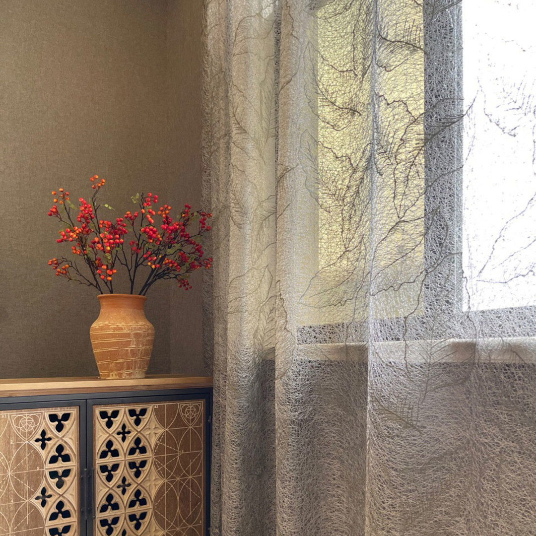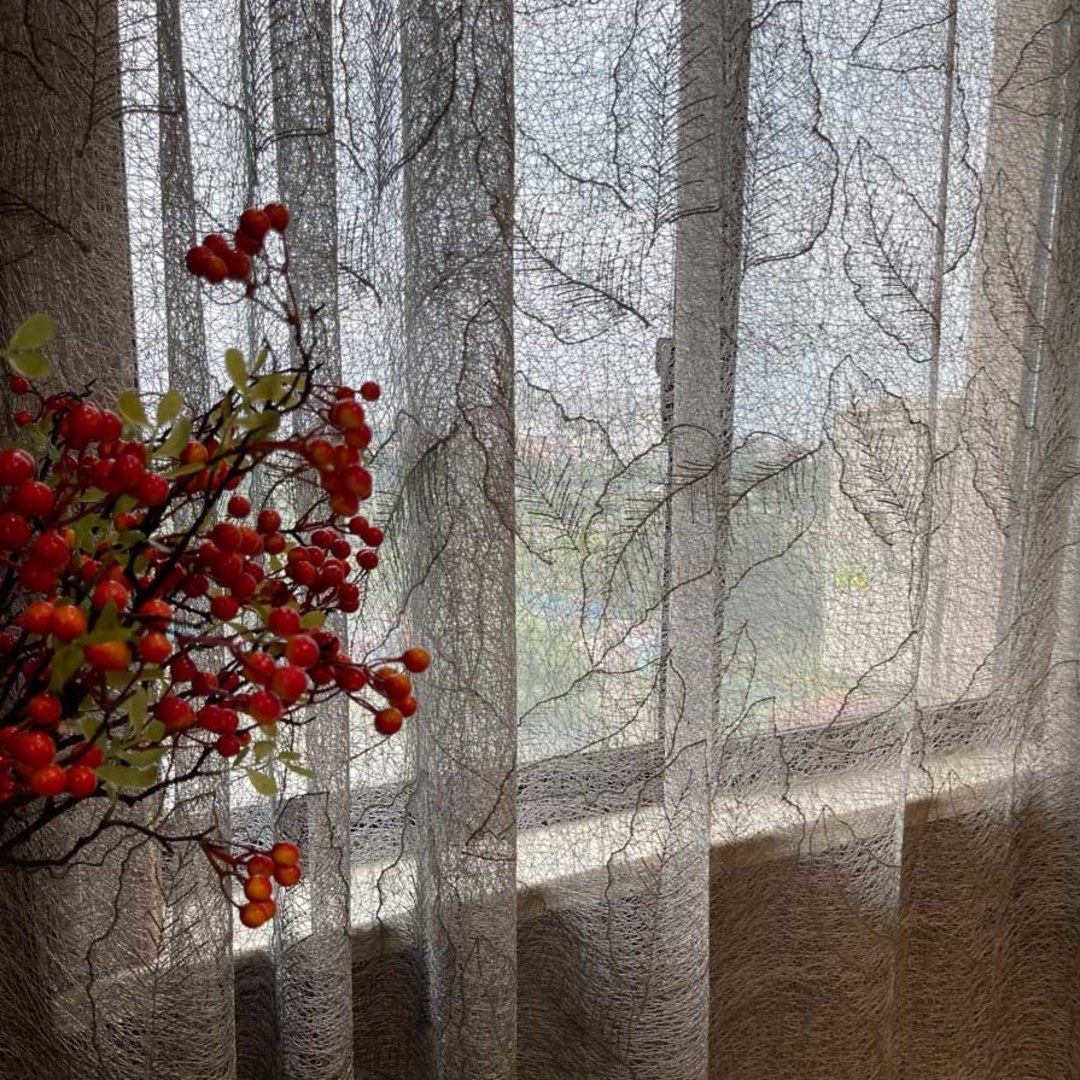The delicate leaf and line detailing of these stylish gold embroidered meash net curtains bring a piece of contemporary floral art into your home. They allow plenty of light into the room while offering privacy and a touch of class, make them perfect for living room french door curtains and sliding glass door curtains.Our made to measure curtains are meticulously crafted to meet your specific preferences. They come in a variety of heading styles to suit your taste, including pencil pleat, eyelet, pinch pleat, tailored pleat, inverted box pleat, tab top, back tab, rod pocket, wave and door net curtains.Explore how Leaf Curtains can update any room.
