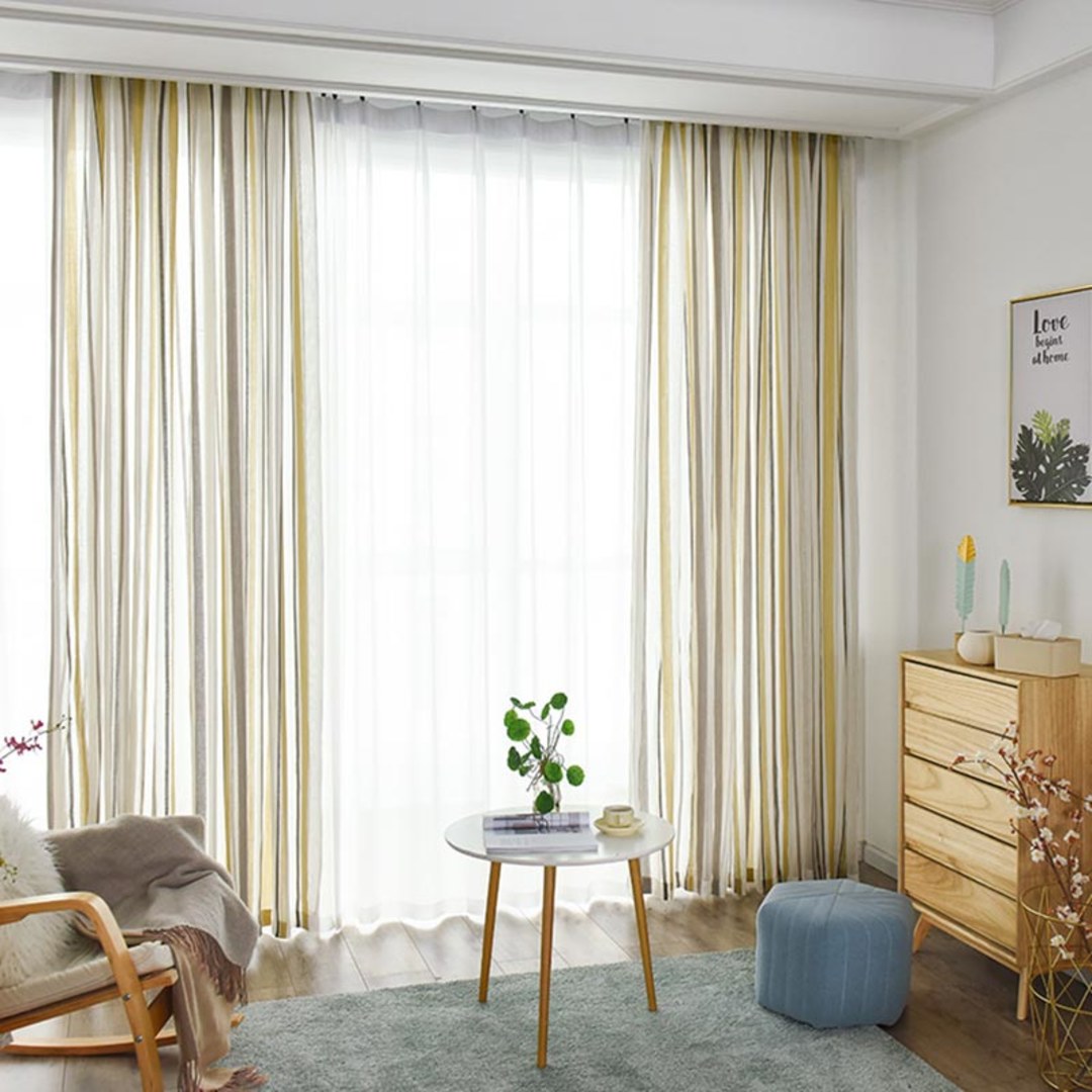 Simple mais élégant, des rayures sur un fond en lin doux avec de douces couleurs pastel pour un look facile et décontracté. Les brins verticaux ajoutent plus de dimension au design.Nos rideaux en voile sur mesure peuvent être créés selon les exigences exactes de vos fenêtres et sont disponibles dans un choix de styles de tête, notamment plissé simple, plissé double, plissé triple, œillets, patins, rideaux en voile à poche à tige. Découvrez comment les rideaux en voile rayés peuvent moderniser n'importe quelle pièce.