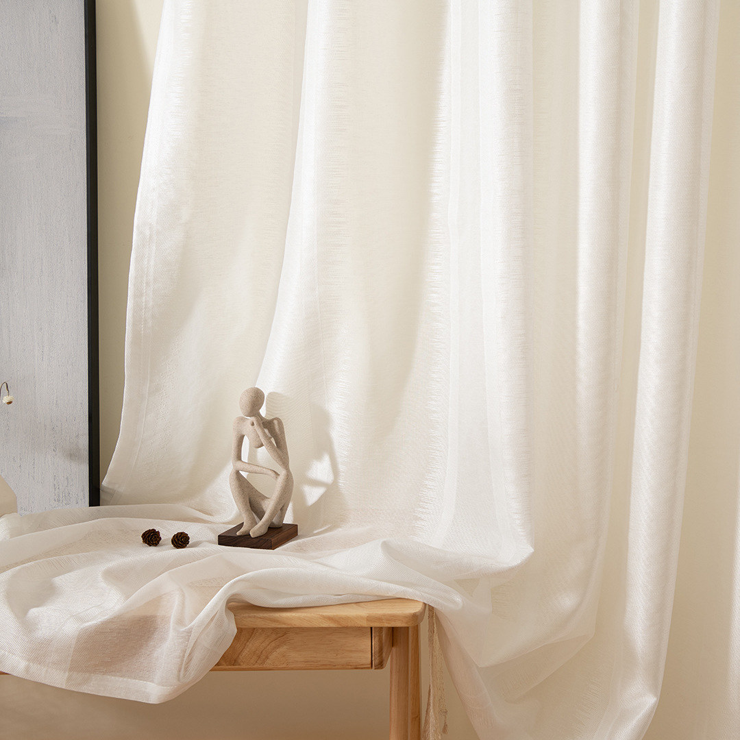 Créez des intérieurs luxueux avec ce voile blanc élégant et sophistiqué. Ces rideaux voilés à rayures uniques présentent des motifs et des textures complexes qui créent un espace élégant et classique sans perdre l’esthétique minimaliste.