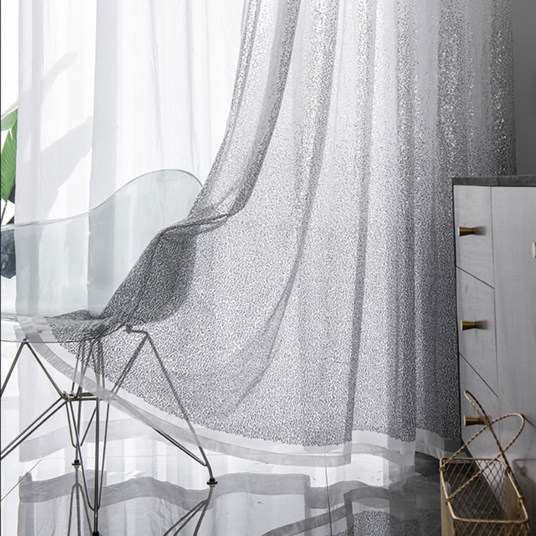 Sublimez l'ambiance de n'importe quelle pièce avec nos magnifiques rideaux voilages ornés de sequins cousus. Ces rideaux voilages captivants ajoutent sans effort une touche de glamour et de sophistication à votre intérieur. Les sequins chatoyants captent magnifiquement la lumière, transformant votre pièce en un havre moderne et exotique.