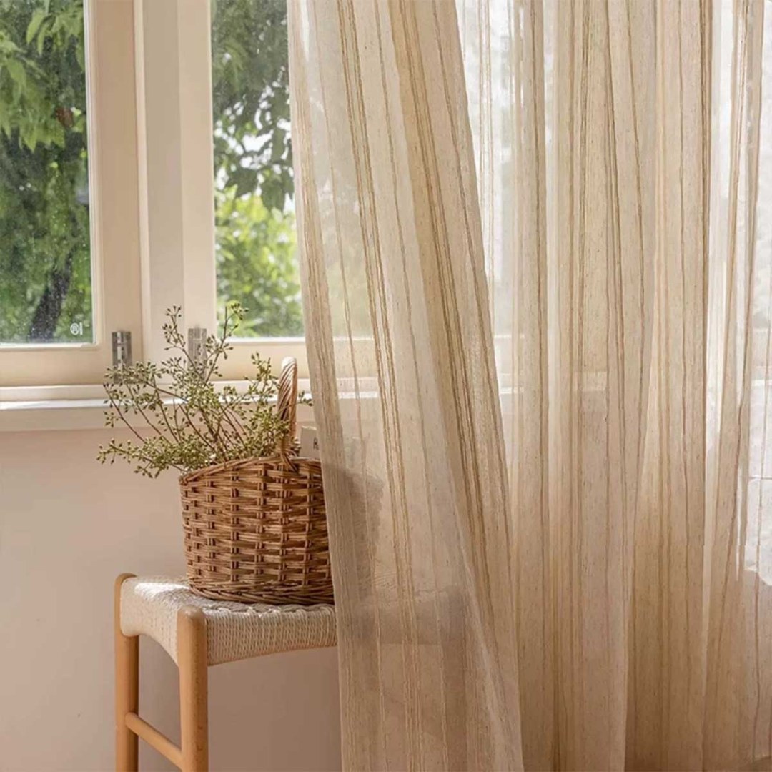 Ajoutez une lumière douce à votre pièce tout en créant de l'intimité avec ces élégants rideaux en voile de lin rayé. La pièce adopte une palette de couleurs simple et discrète, où les voilages sont subtilement modernisés avec des lignes épurées, ajoutant une touche d'élégance contemporaine. Nos rideaux en voile sur mesure sont méticuleusement confectionnés pour répondre à vos préférences spécifiques. Ils sont disponibles dans une variété de styles de tête, pour s'adapter à vos goûts, notamment à plis crayon, à œillets, à plis pincés, à plis tailleur, à plis inversés, à patte, à coulisse cachee, à poche à tringle et rideau à vague. Découvrez comment les rideaux en voile rayé peuvent moderniser n'importe quelle pièce.