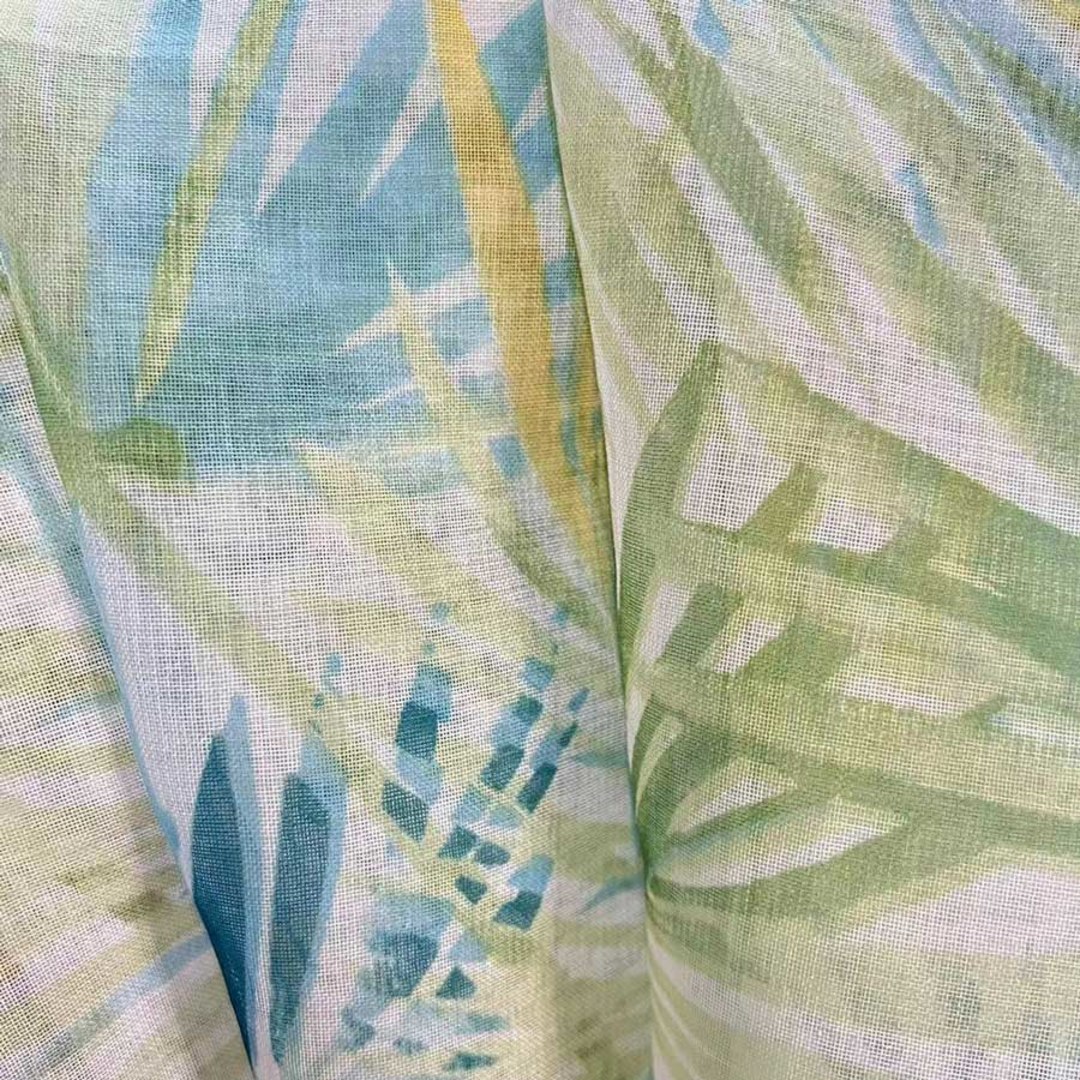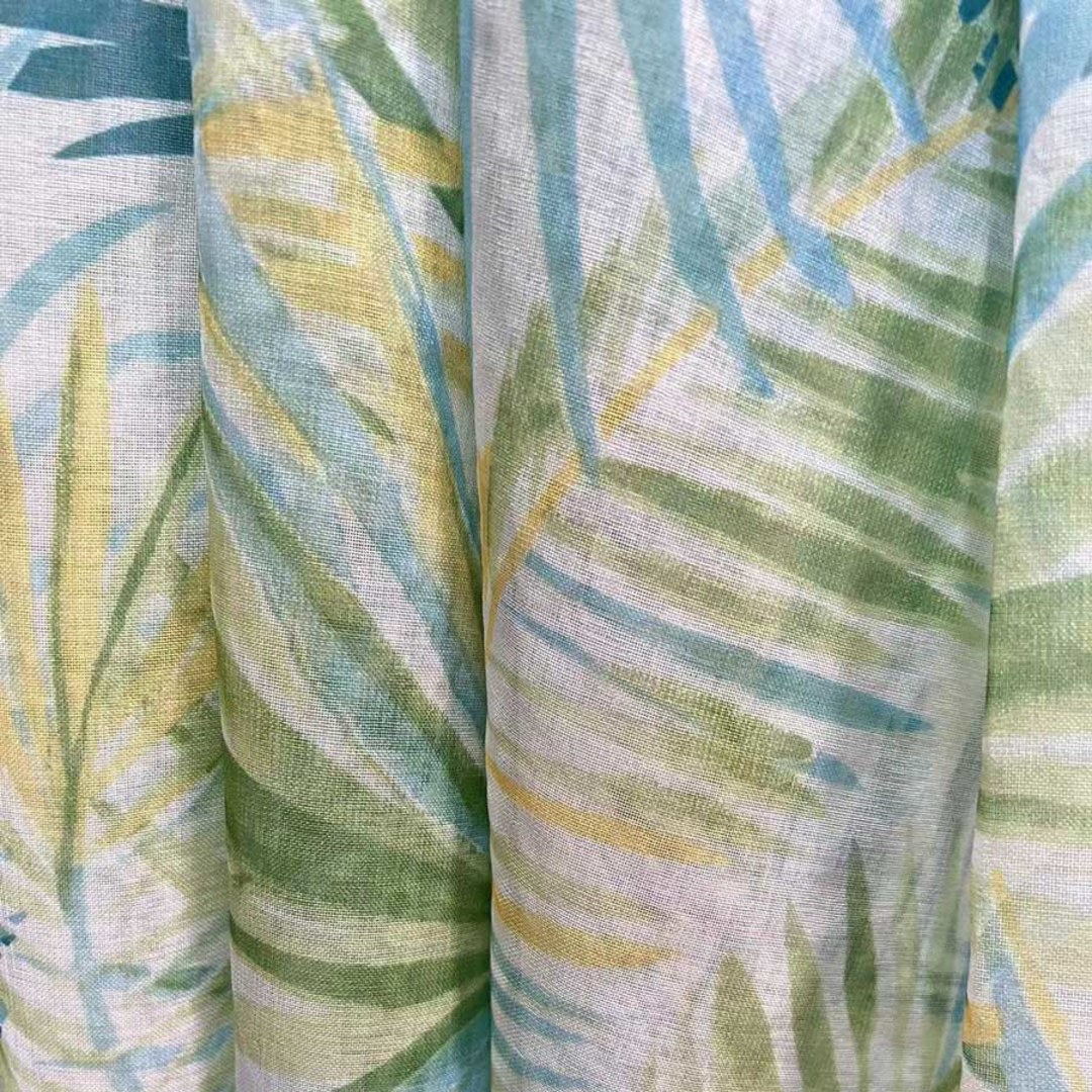 Palm Delight Tropical Leaves Green Blue Voile Curtain met en valeur un motif de feuilles tropicales dans des tons rafraîchissants de vert et de bleu, créant une atmosphère paisible et vivifiante. Les détails complexes des feuilles apportent une touche d'élégance tropicale à votre intérieur, vous permettant d'embrasser la sérénité d'une oasis luxuriante.Nos rideaux en voile sur mesure sont méticuleusement confectionnés pour répondre à vos préférences spécifiques. Ils sont disponibles dans une variété de styles de plis pour s'adapter à vos goûts, notamment le galon plissé, l’œillet, le triple épingle, le biais personnalisé, le plis creux inversé, le patin, le coulisse arrière, la poche à tringle et le rideau à vague. Découvrez comment les rideaux voilages tropicaux peuvent moderniser n'importe quelle pièce.