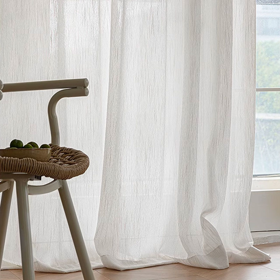 Inspirez-vous de ces rideaux voilages rayés à texture douce pour créer votre propre version d'un intérieur relaxant. Nos rideaux voilages sur mesure sont méticuleusement confectionnés pour répondre à vos préférences spécifiques. Ils sont disponibles dans une variété de styles d'en-tête pour s'adapter à vos goûts, notamment à plis crayon, à œillets, à plis pincés, à plis tailleur, à plis creux inversés, à patte, à coulisse arrière, à poche à tringle et rideaux à vague. Découvrez comment les rideaux voilages rayés blancs peuvent moderniser n'importe quelle pièce.