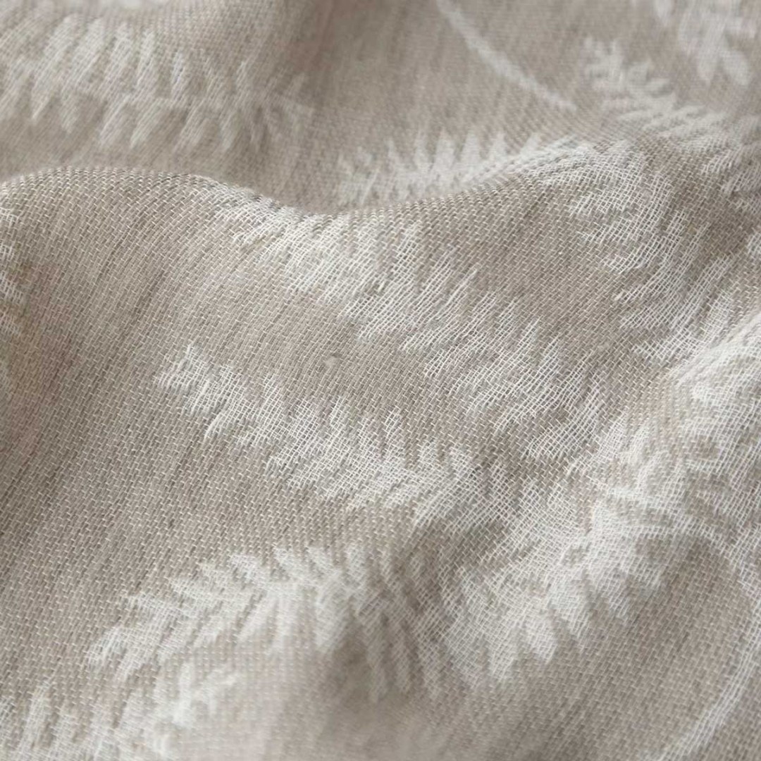 Une délicate danse de motifs de fougères subtilement tissés dans le tissu vaporeux, ce rideau apporte un souffle de nature à l'intérieur. Le doux jeu du lin et de la laine crée un effet aérien et filtrant, idéal pour un espace serein et paisible. Nos rideaux en voile sur mesure sont méticuleusement confectionnés pour s'adapter parfaitement aux dimensions uniques de vos fenêtres. Choisissez parmi une variété de styles de tête sophistiqués, notamment œillets, patte de fixation, plissé simple, plissé double, plissé façonné, poche à tringle, rideaux pour fenêtres ou rideaux à plis amples. Découvrez comment les rideaux en voile de lin peuvent moderniser n'importe quelle pièce.