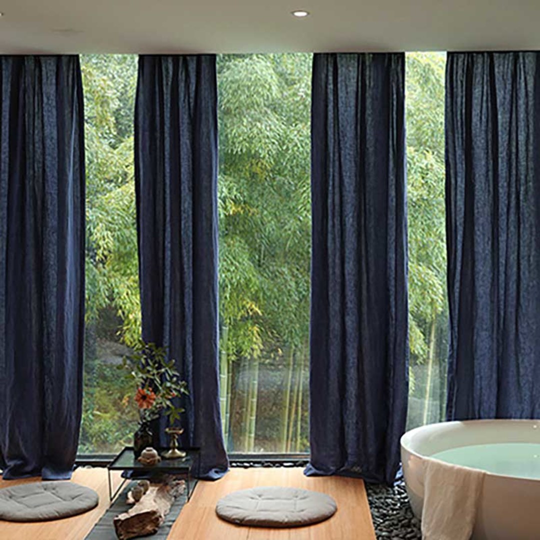 Wabi Sabi Linge de lin en lin pur Rideau de voile bleu marine