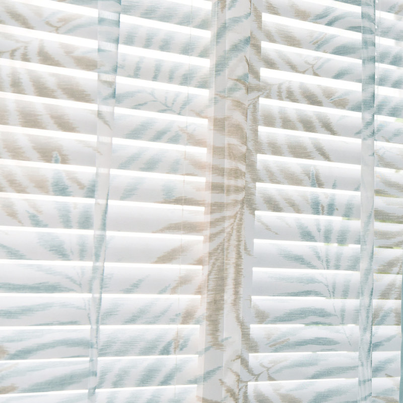 Ce joli rideau en voile présente des ‘Feuilles de Palmier’ pour apporter une touche tropicale. Il peut être associé aux rideaux assortis pour profiter pleinement d’une vue imprenable.