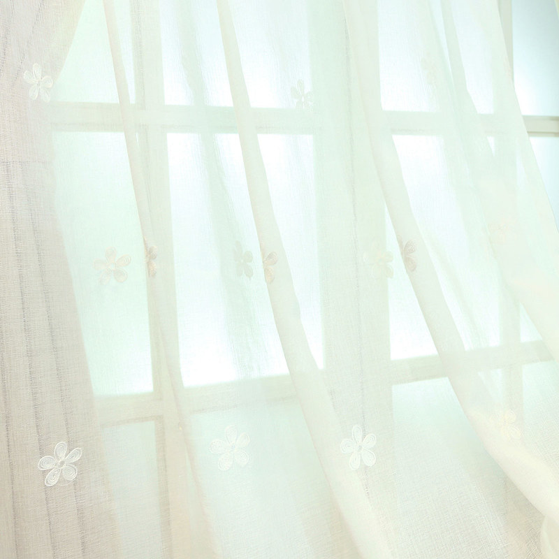 Avec de belles fleurs blanches et une ambiance de rêve, ces charmants rideaux en voile ne manqueront pas de vous séduire. Nos rideaux en voile sur mesure sont adaptés à vos besoins précis en matière de fenêtres et disponibles dans un choix de styles de tête : œillets, patte de fixation, plissé simple, plissé double, plissé personnalisé, plissé à pinces, plissé inversé, poche à tringle et rideaux à vagues. Découvrez comment les rideaux en voile à motifs floraux peuvent moderniser n'importe quelle pièce.