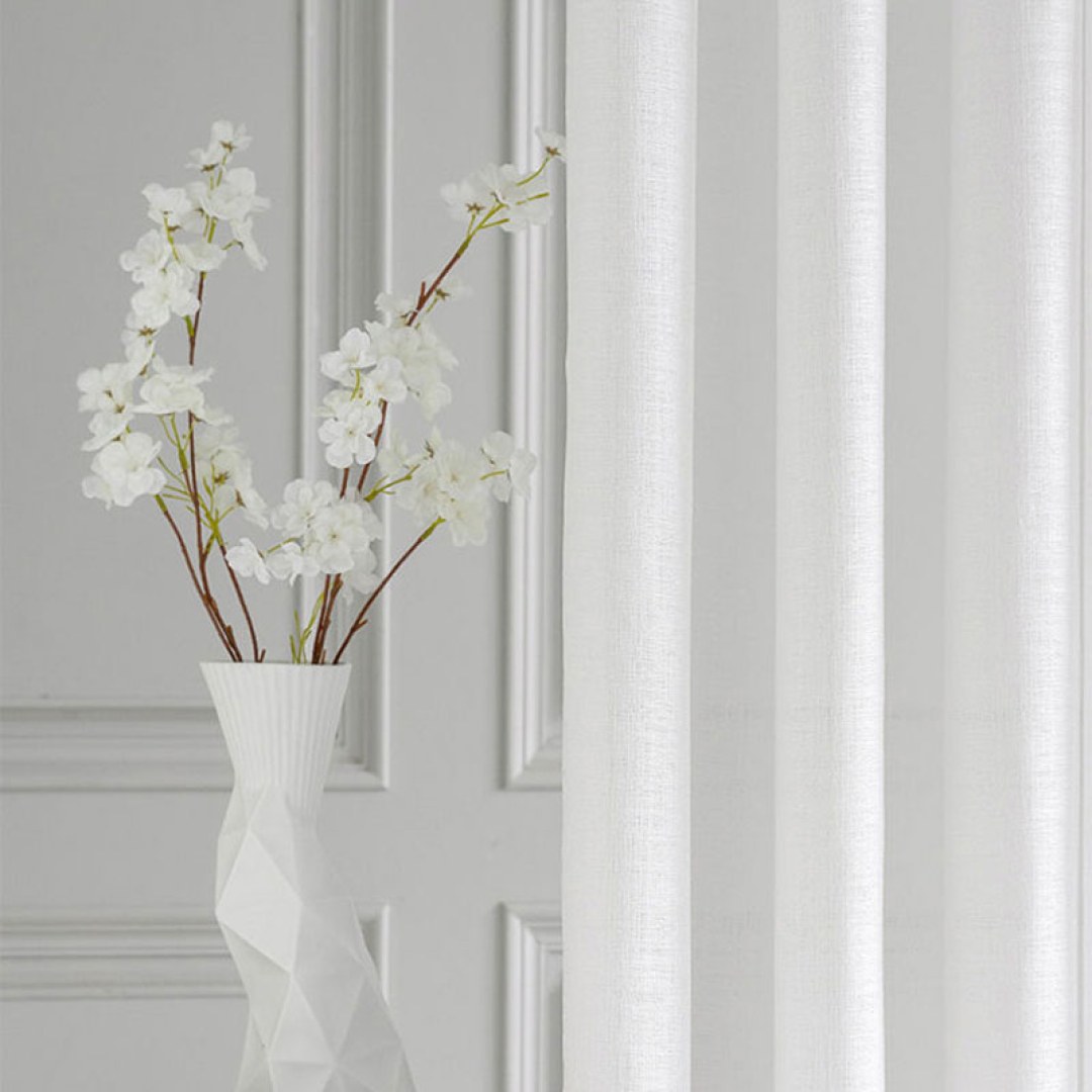 Frais, propre, lumineux et aéré - les magnifiques rideaux voilages blancs texturés en lin vous aideront à voir le bon côté des choses. Beaucoup de lumière naturelle traverse ces rideaux voilages épais, ce qui les rend parfaits pour les rideaux de portes-fenêtres et les rideaux de portes coulissantes. Nos rideaux sur mesure sont méticuleusement confectionnés pour répondre à vos préférences spécifiques. Ils sont disponibles dans une variété de styles de tête pour convenir à vos goûts, notamment le galon plissé, l’œillet, le plissé pincé, le plissé tailleur, le plissé boîte inversé, le passe-tringle, le coulisse dos et la poche à tringle, ainsi que le plissé ondulé. Découvrez comment les rideaux voilages épais peuvent moderniser n’importe quelle pièce.