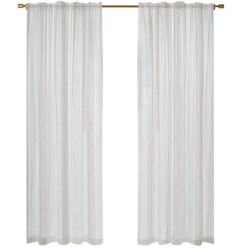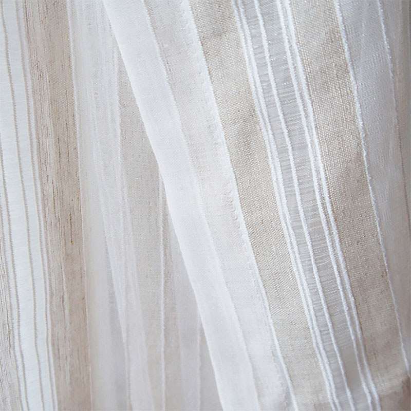Subtil et élégant, ce rideau voilé présente de doux rayures flockées dans des tons de lin naturels, ajoutant texture et profondeur au tissu blanc aérien. Le motif vertical crée un effet léger et dimensionnel qui complète magnifiquement les intérieurs modernes et minimalistes. Nos rideaux sur mesure sont confectionnés selon vos exigences exactes et sont disponibles dans un choix de styles de tête : œillets, pattes de fixation, plissé simple, plissé façonné, plissé pincé, pince inversée, poche à tringle et rideaux à vague. Découvrez comment les rideaux voilés rayés peuvent moderniser n'importe quelle pièce.