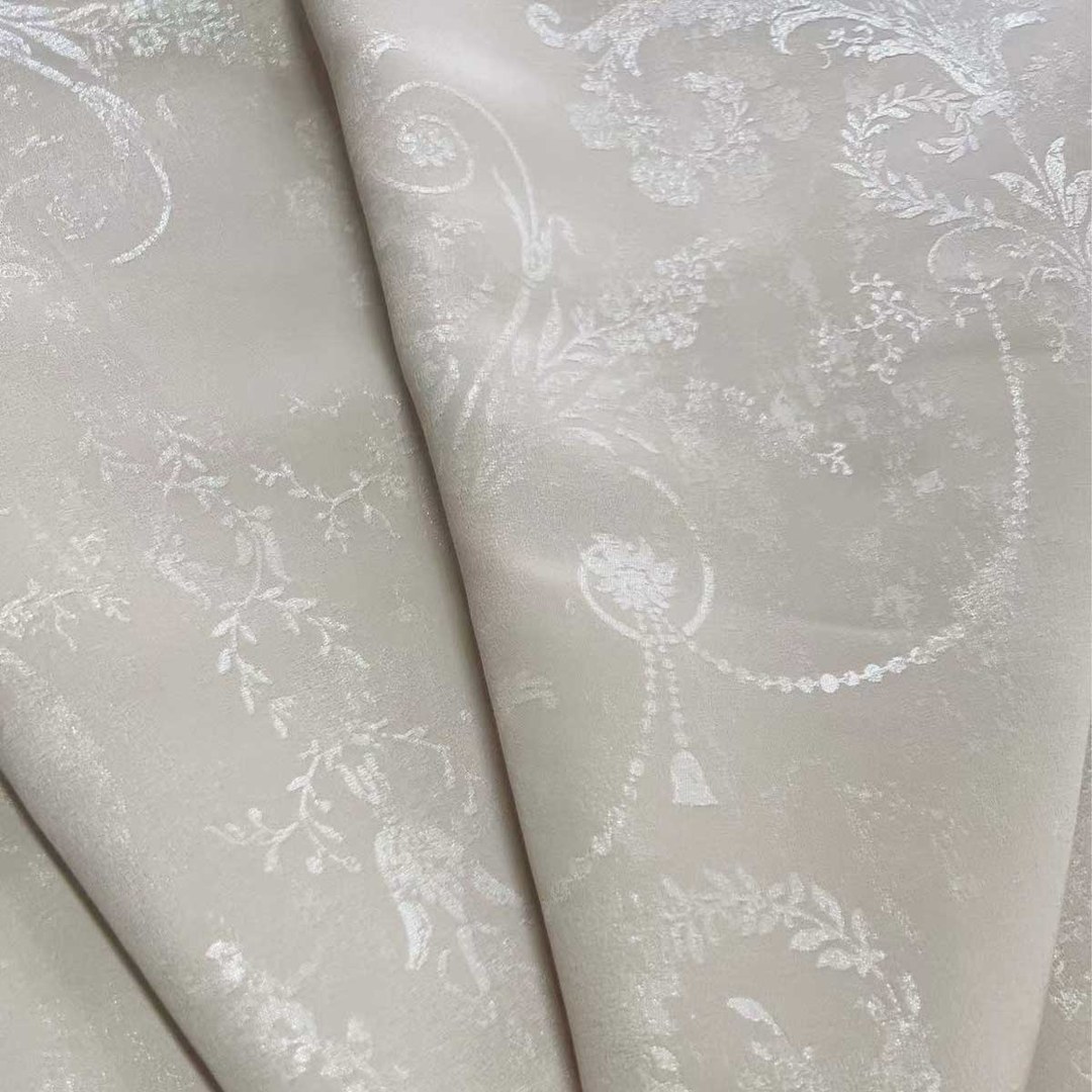 Embrace the classic design with these silky luxury jacquard Damask floral cream and silver curtains in your decor.