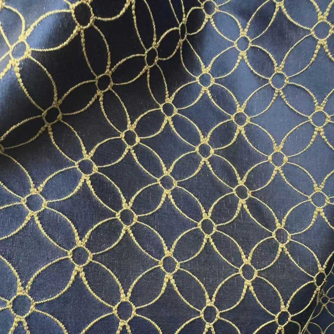 Subtle metallic threads in gold infuse a graceful shimmer, enhancing the design with a refined touch of luxury.