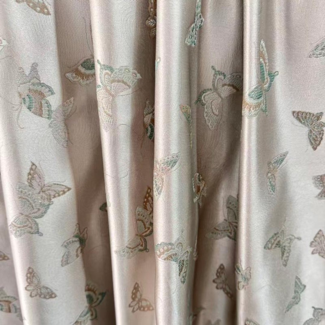 Butterfly Ballet Jacquard Cream Satiny Floral Curtain