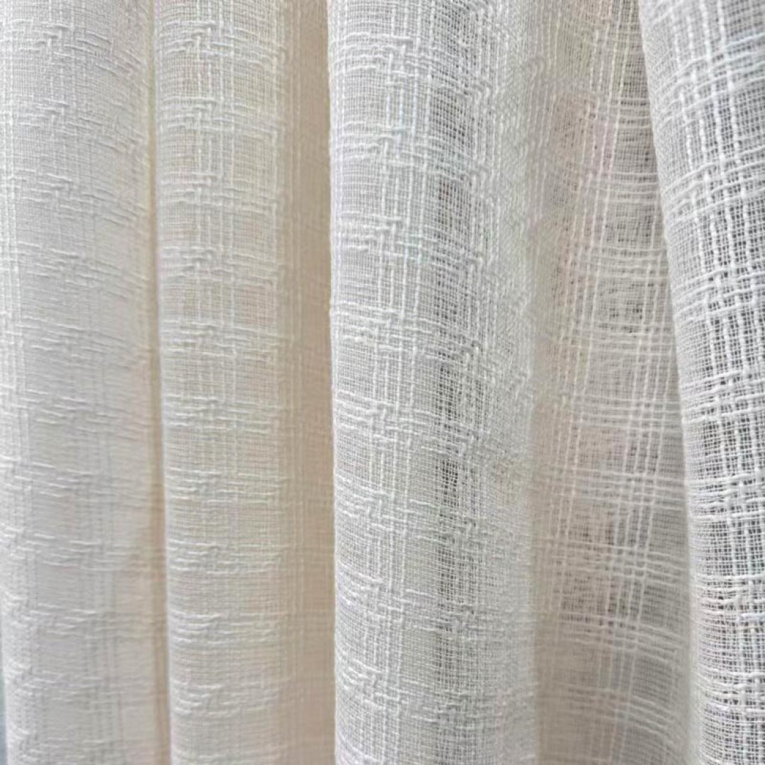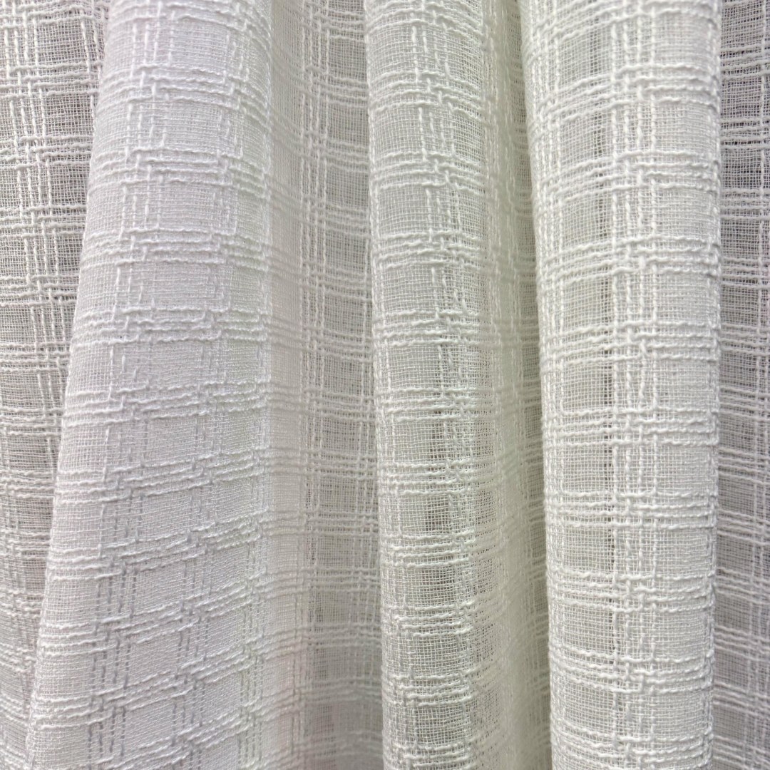 Ethereal Grid Cream Linen Style Voile Curtain
