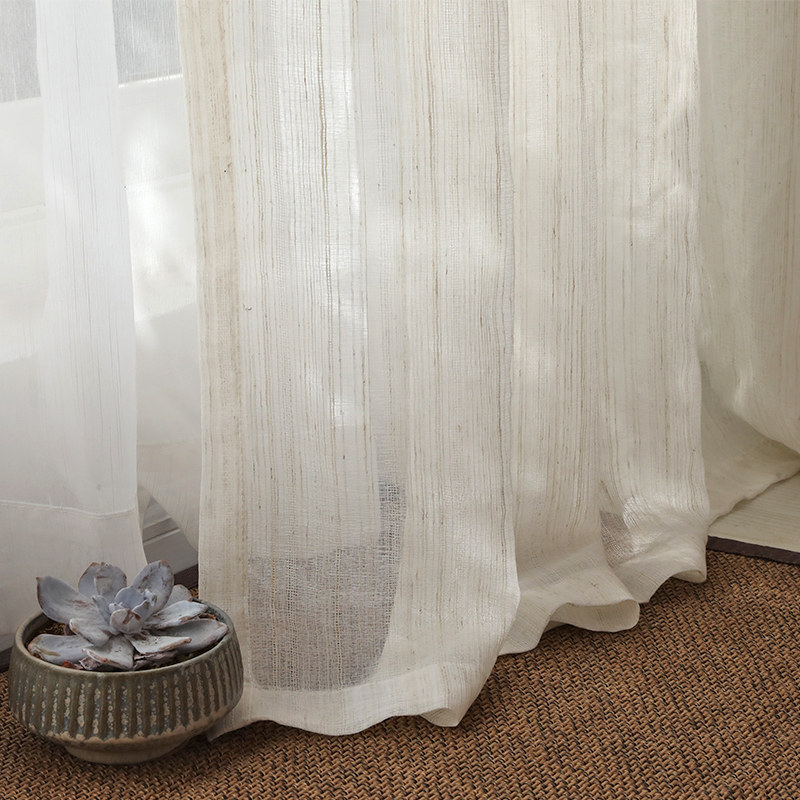 This linen-style sheer curtain features subtle stripes in a neutral oatmeal hue, creating a light, airy, and versatile look.