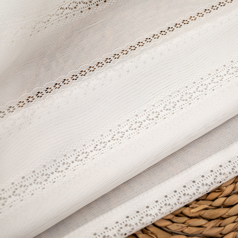 Woven with graceful hollowed stripes, this sheer fabric captures the refined simplicity of Japanese design, reminiscent of the lightness of sakura blossoms in spring. The airy weave allows light to flow gently through, creating a serene and sophisticated atmosphere.