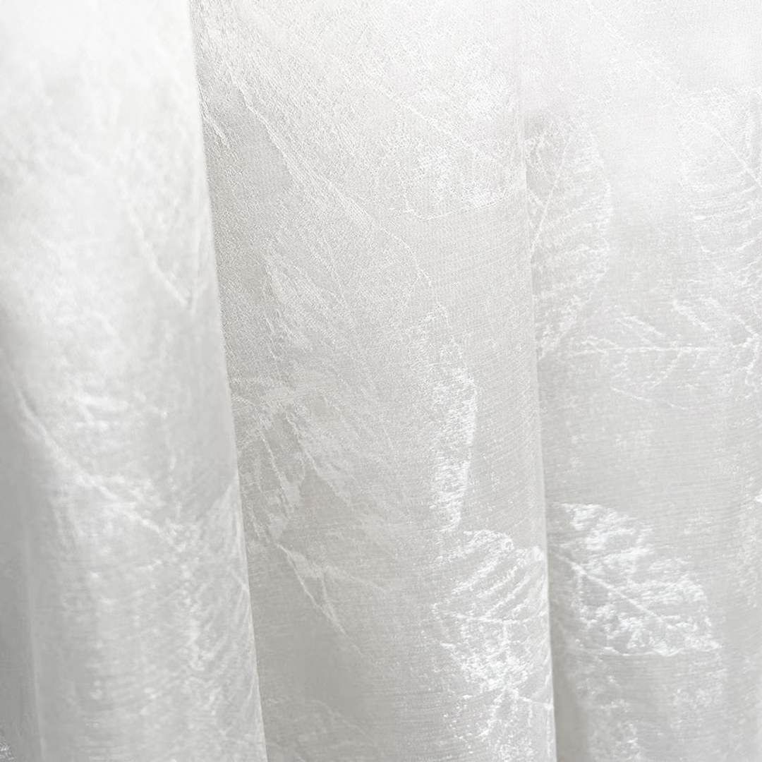 The exquisite leaf design radiates a captivating charm, infusing the surroundings with a natural elegance. The Shimmering Leaves sheer curtain allows plenty of light into the room while offering privacy.