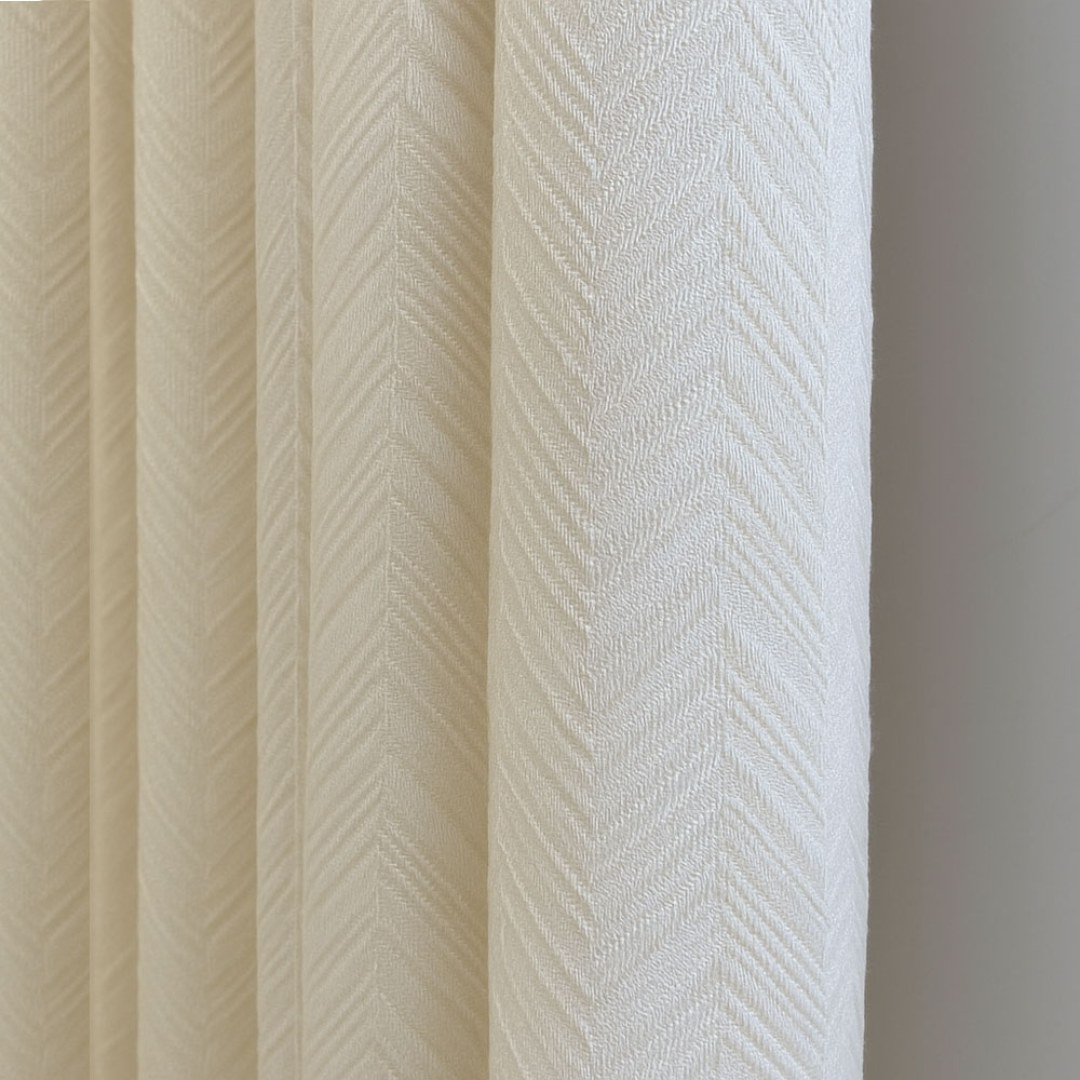 This elegant jacquard heavy sheer features a textured, flowing chevron pattern that adds depth and sophistication to any space.