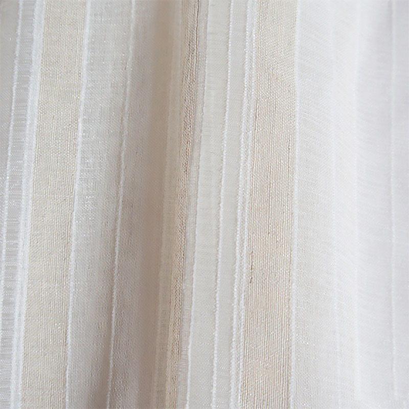 Subtle yet stylish, this sheer curtain features soft flocked stripes in natural linen tones, adding texture and depth to the airy white fabric. The vertical pattern creates a light, dimensional effect that beautifully complements modern and minimalist interiors.