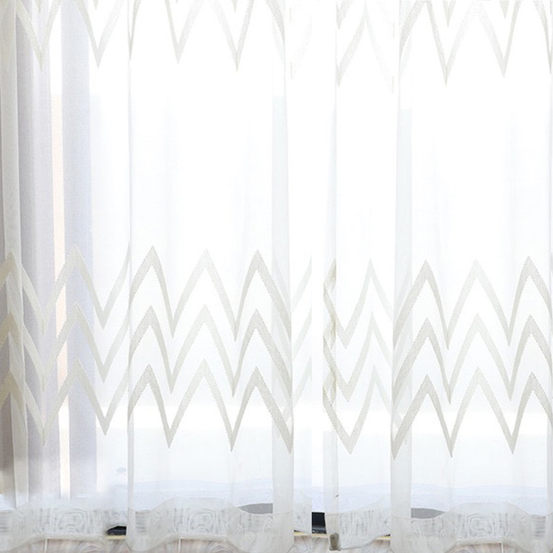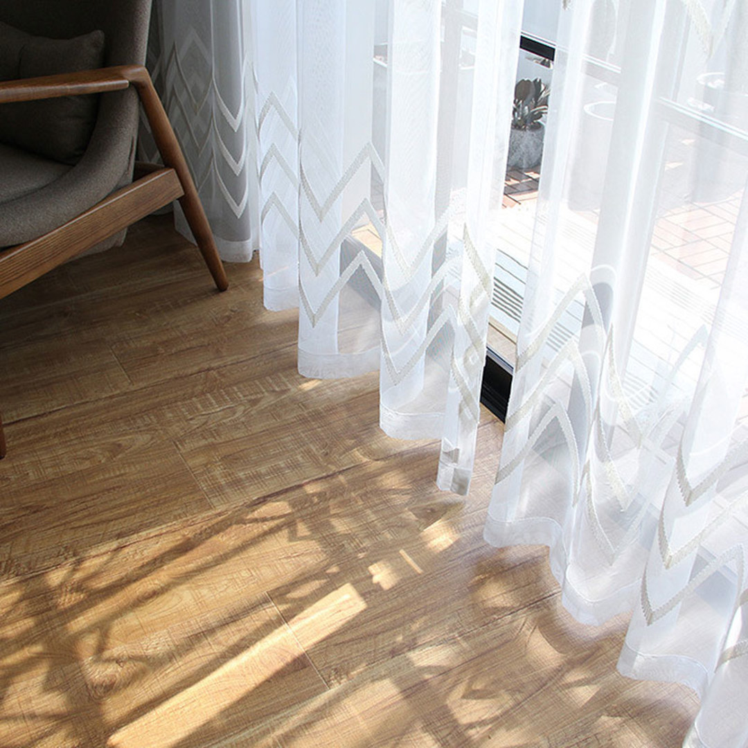 GeoWave features embroidered geometric waves that add subtle texture and a modern edge. Its airy fabric softly filters light, making it a versatile choice to elevate contemporary and minimalist interiors.