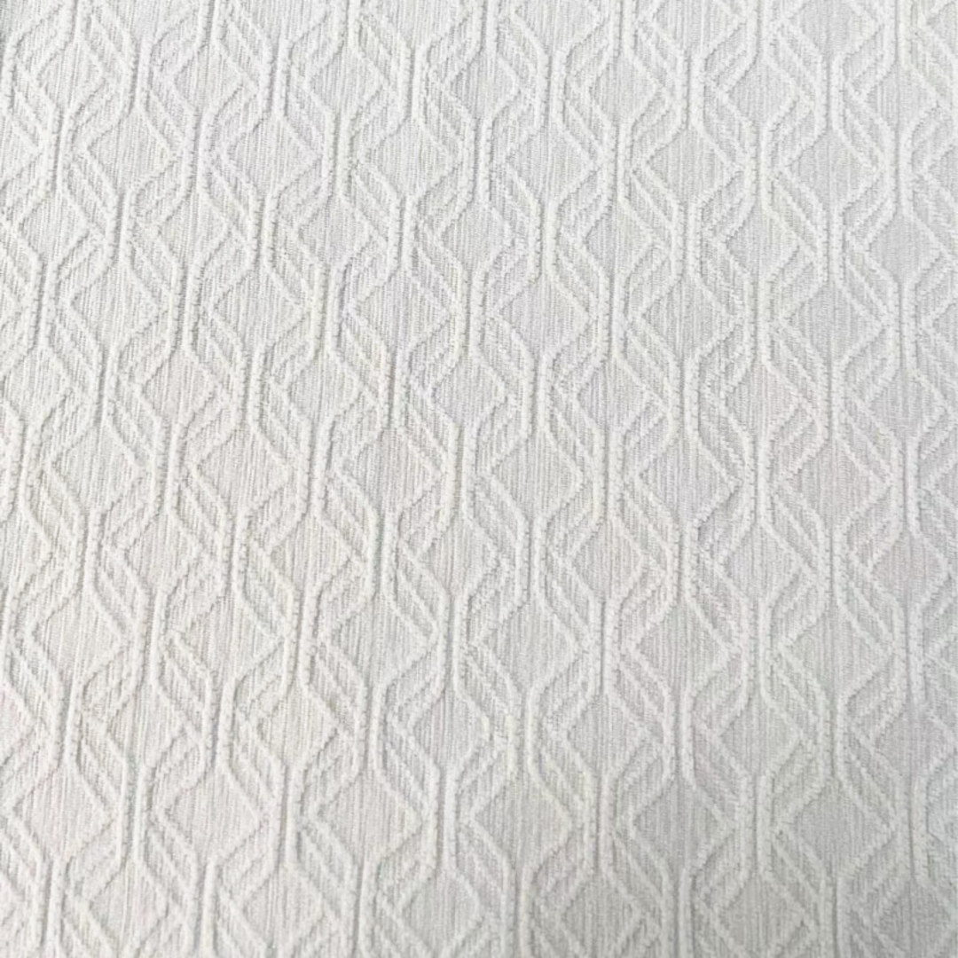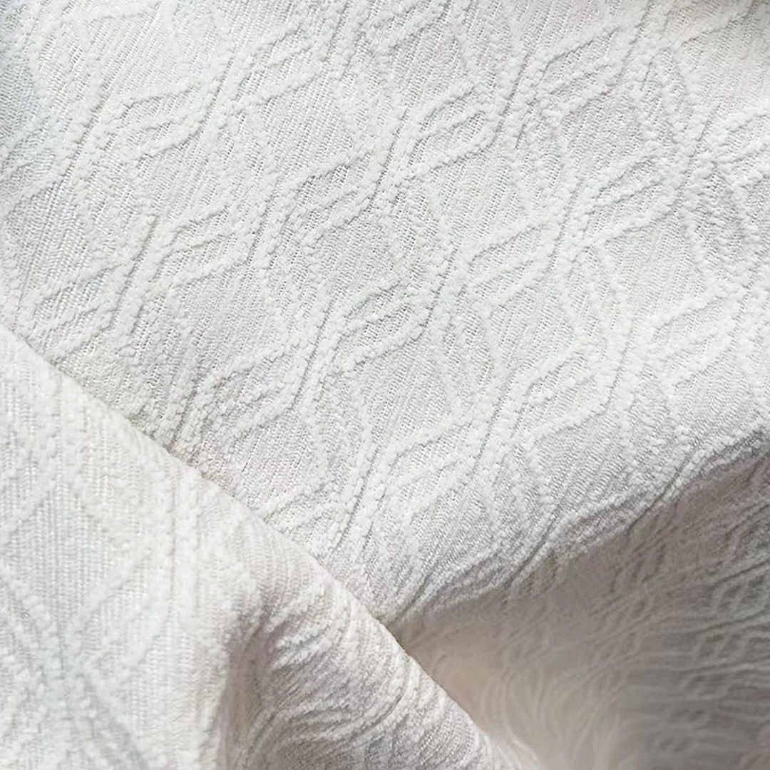 This soft chenille fabric features a textured geometric pattern with an interlocking diamond design. The fabric's pattern adds a touch of elegance and sophistication. The chenille material is known for its softness and luxurious feel, providing both comfort and style to any space.