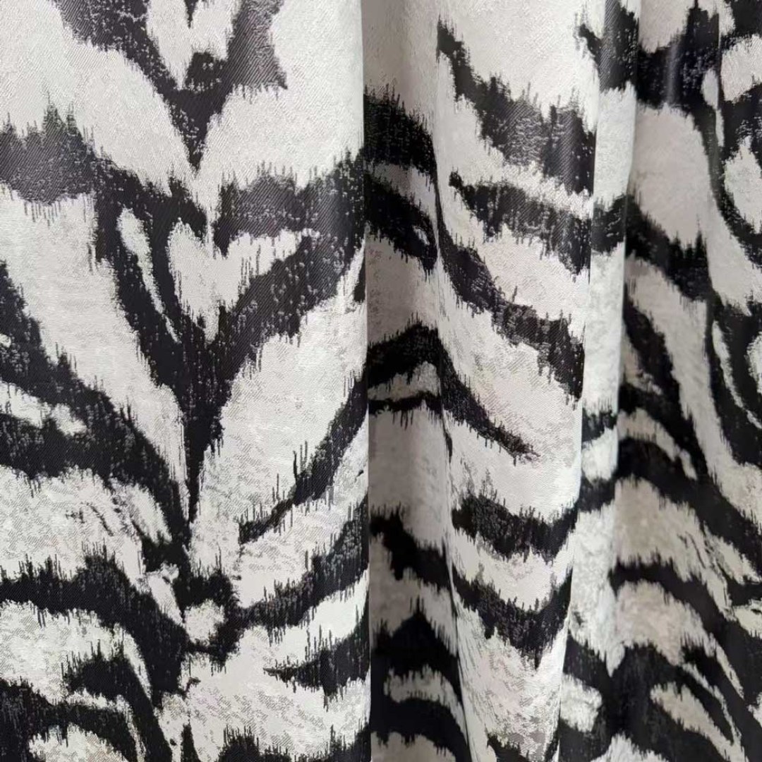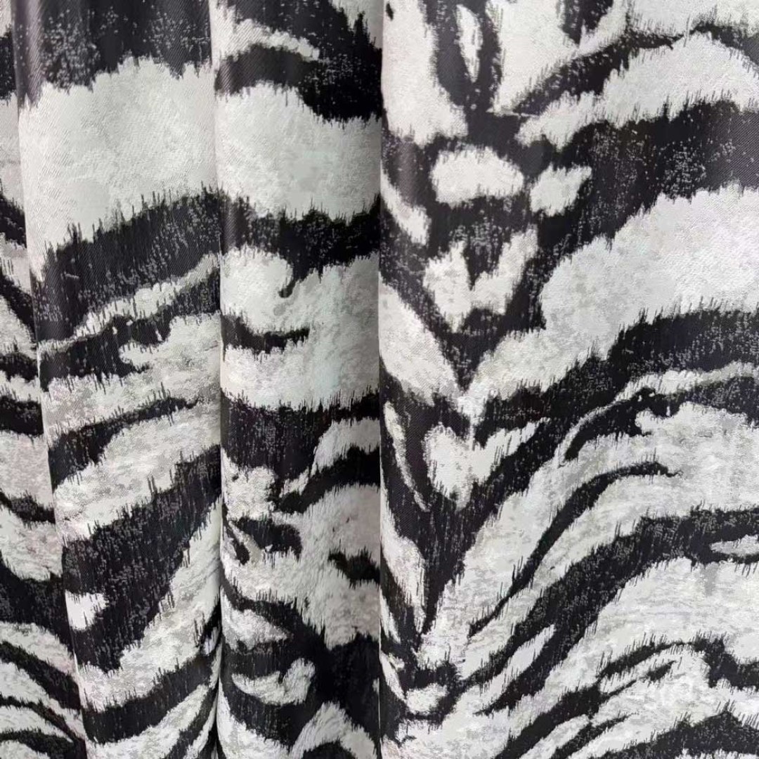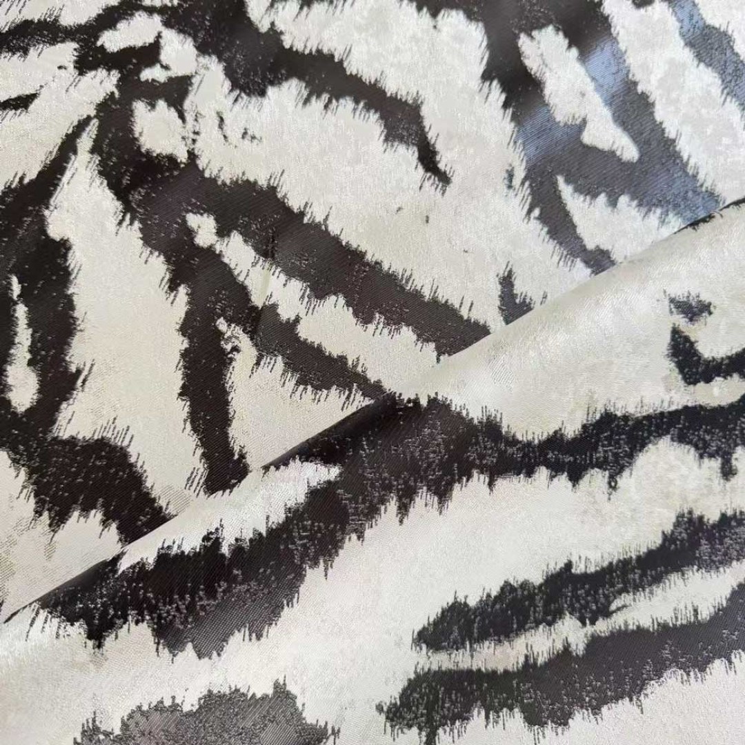 Unleash a sense of bold sophistication with this luxury jacquard curtain fabric, featuring an artfully abstracted tiger stripe pattern. The richly textured weave brings depth and drama to any space, blending wild elegance with contemporary design.
