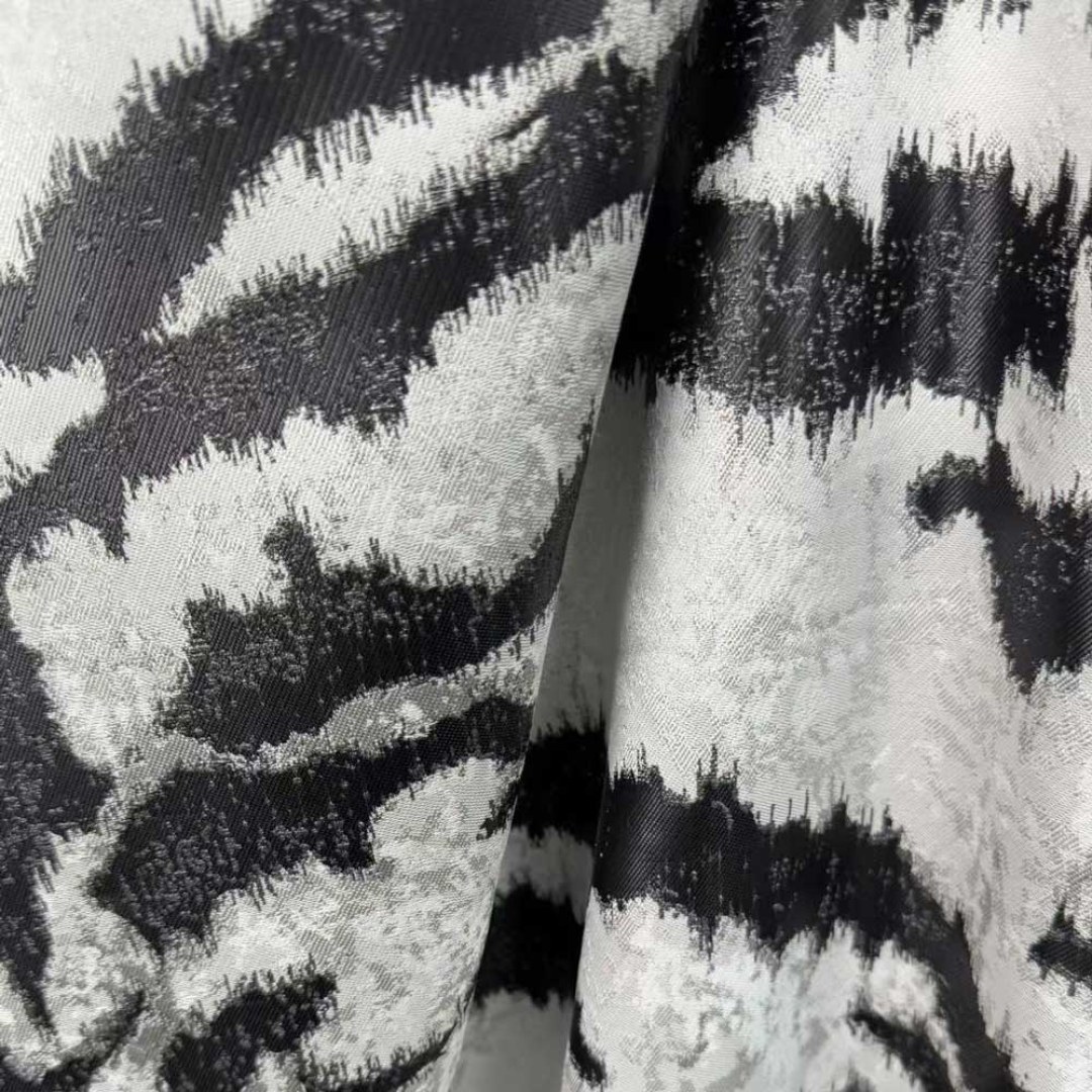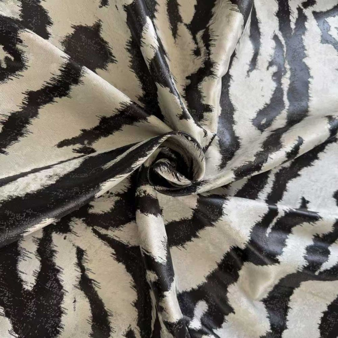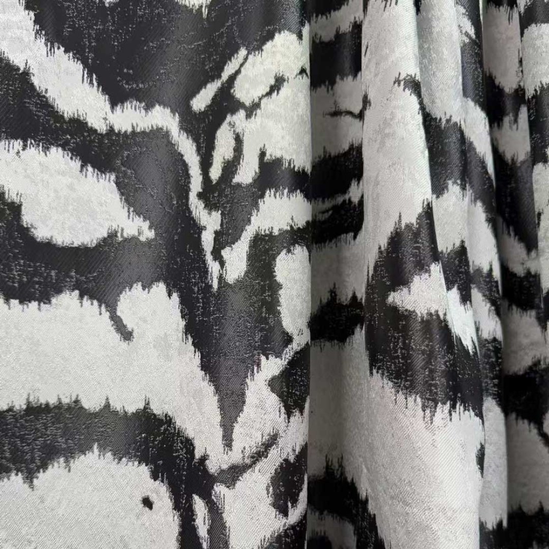 Unleash a sense of bold sophistication with this luxury jacquard curtain fabric, featuring an artfully abstracted tiger stripe pattern. The richly textured weave brings depth and drama to any space, blending wild elegance with contemporary design.
