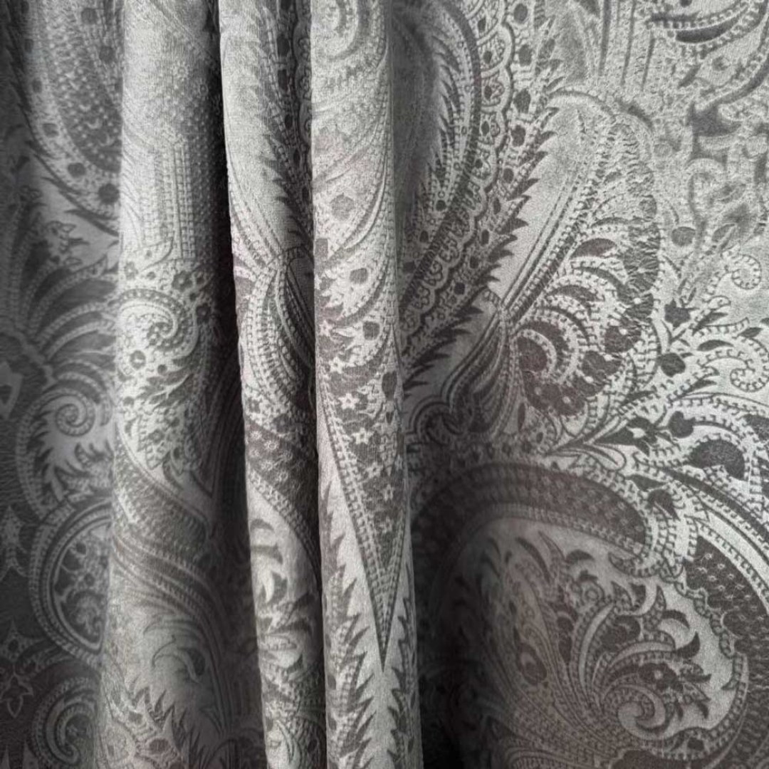 Elevate your space with the timeless elegance of Royal Mirage. This luxurious velvet curtain features an intricately woven damask pattern with a soft, dimensional texture. Perfect for creating a refined, regal atmosphere in living rooms, bedrooms, or formal spaces.