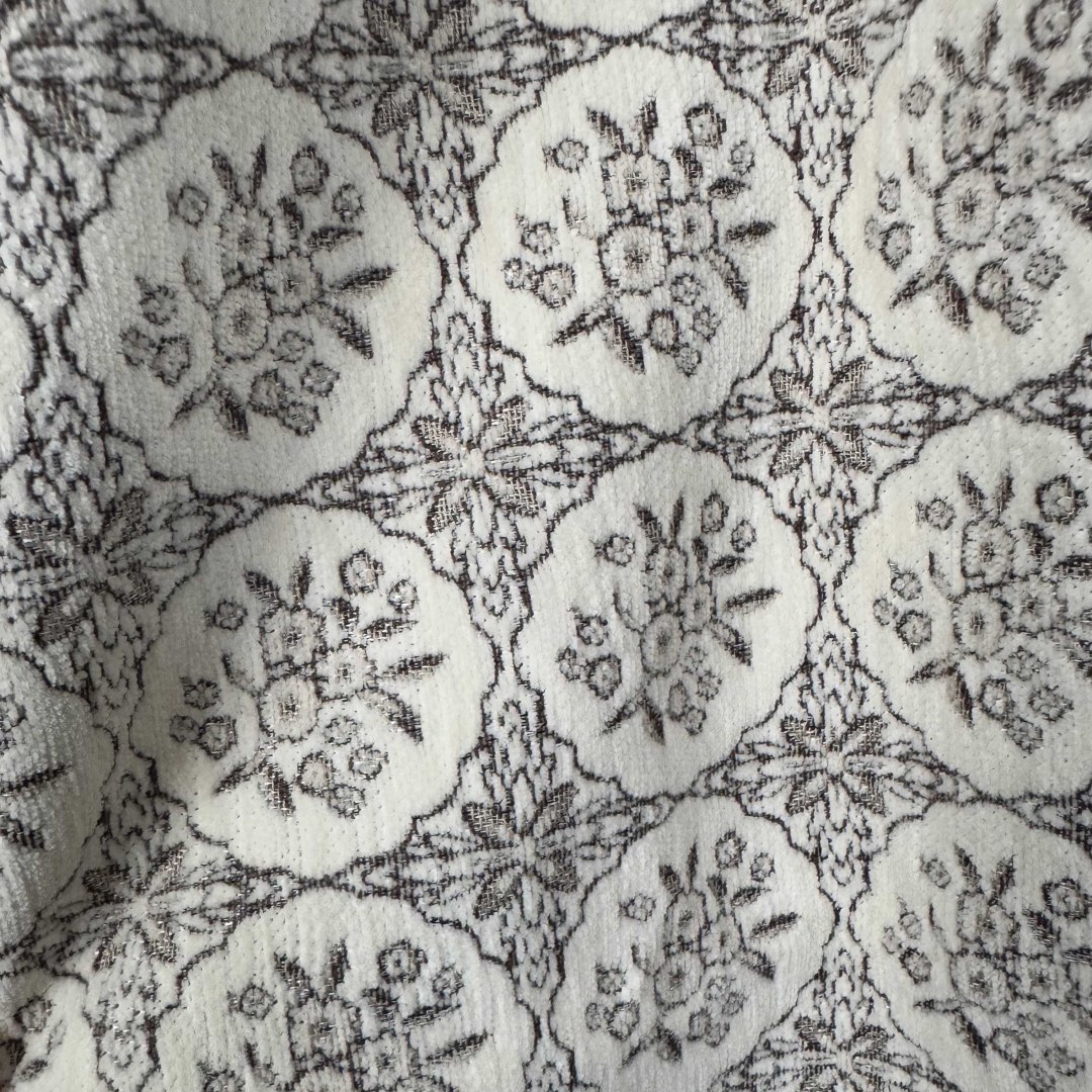 Rose Medallion Black and White Floral Chenille Curtain