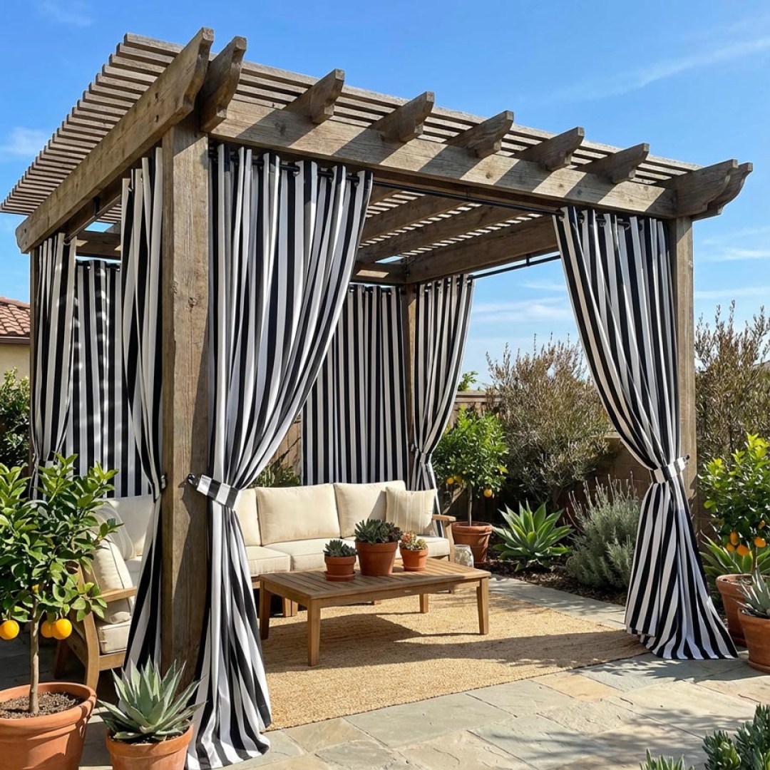 Transform your outdoor space with our Cabana Classic curtains. Featuring a timeless, bold stripe pattern, this durable fabric is designed for outdoor use, adding a chic, resort-like feel and style to any patio or porch.