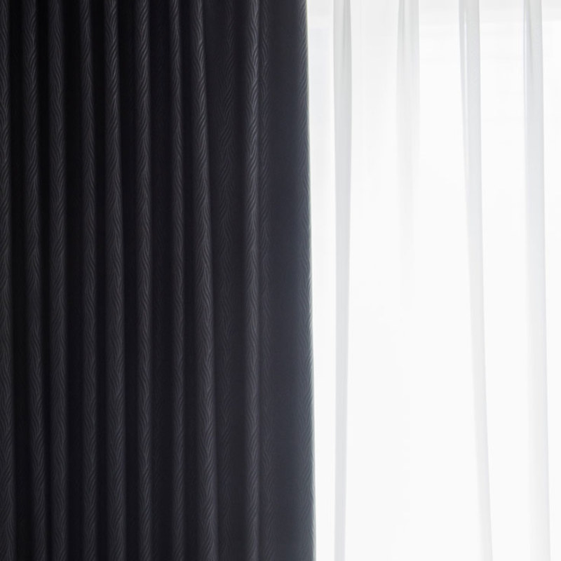 Superthick Willow Leaves Charcoal Black 100% Blackout Curtain