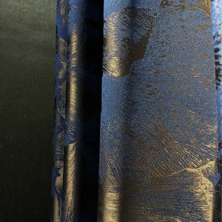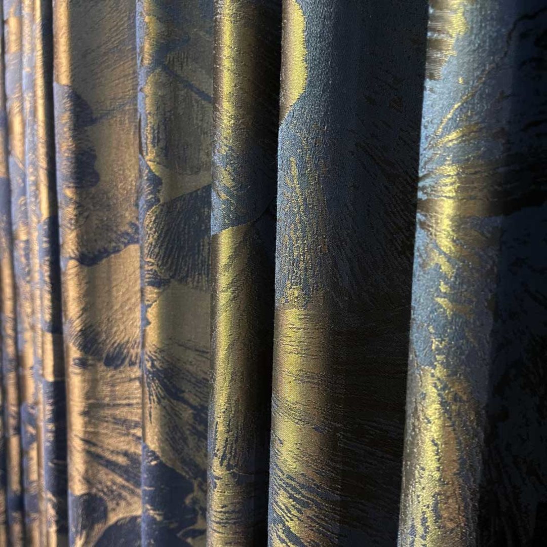 Nocturne Jacquard Ginkgo Leaves Haze Blue & Brown Curtain