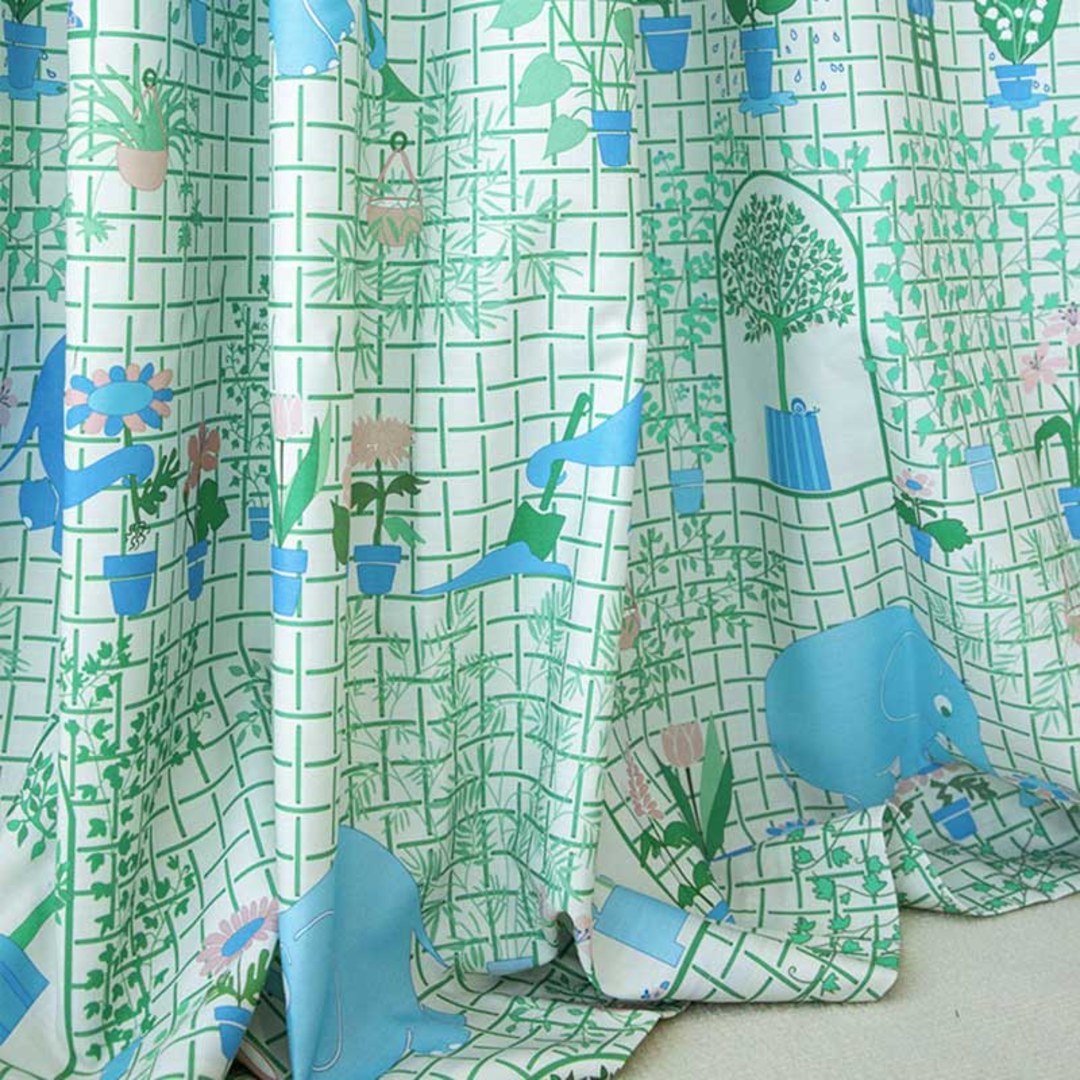 Hardworking elephant gardener busy planting, watering, raking... These cute and adorable curtains in blue and green are the perfect addition to your children's bedroom or playroom.