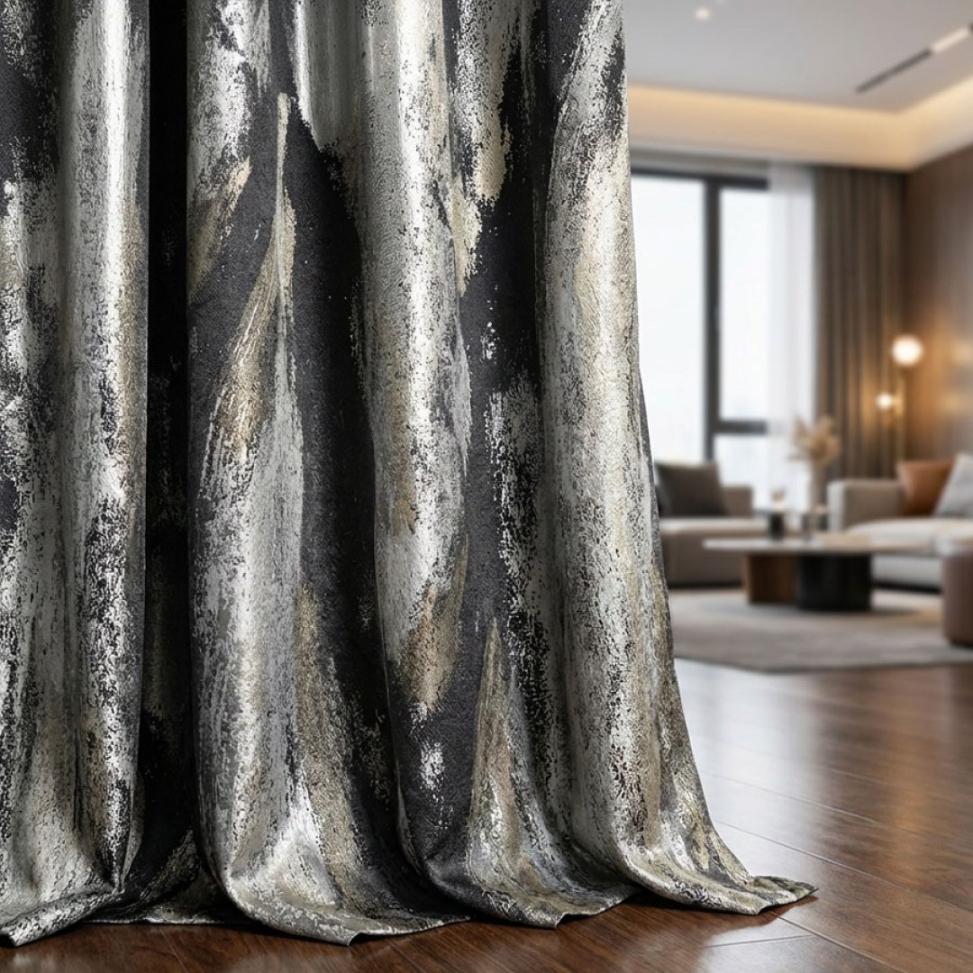 Dazzling Brushwork Luxury Jacquard Gray & Silver Abstract Curtain