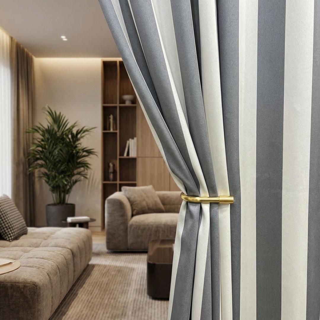 Elevate your interiors with these contemporary striped satin curtains, featuring sleek vertical lines in crisp tones that bring both refined style and visual rhythm to any space.