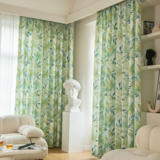 Palm Delight Tropical Leaves Green Blue Curtain showcases a tropical leaf pattern in refreshing shades of green and blue, creating a tranquil and invigorating atmosphere. The intricate detailing of the leaves brings a touch of tropical elegance to your space, allowing you to embrace the serenity of a lush oasis.