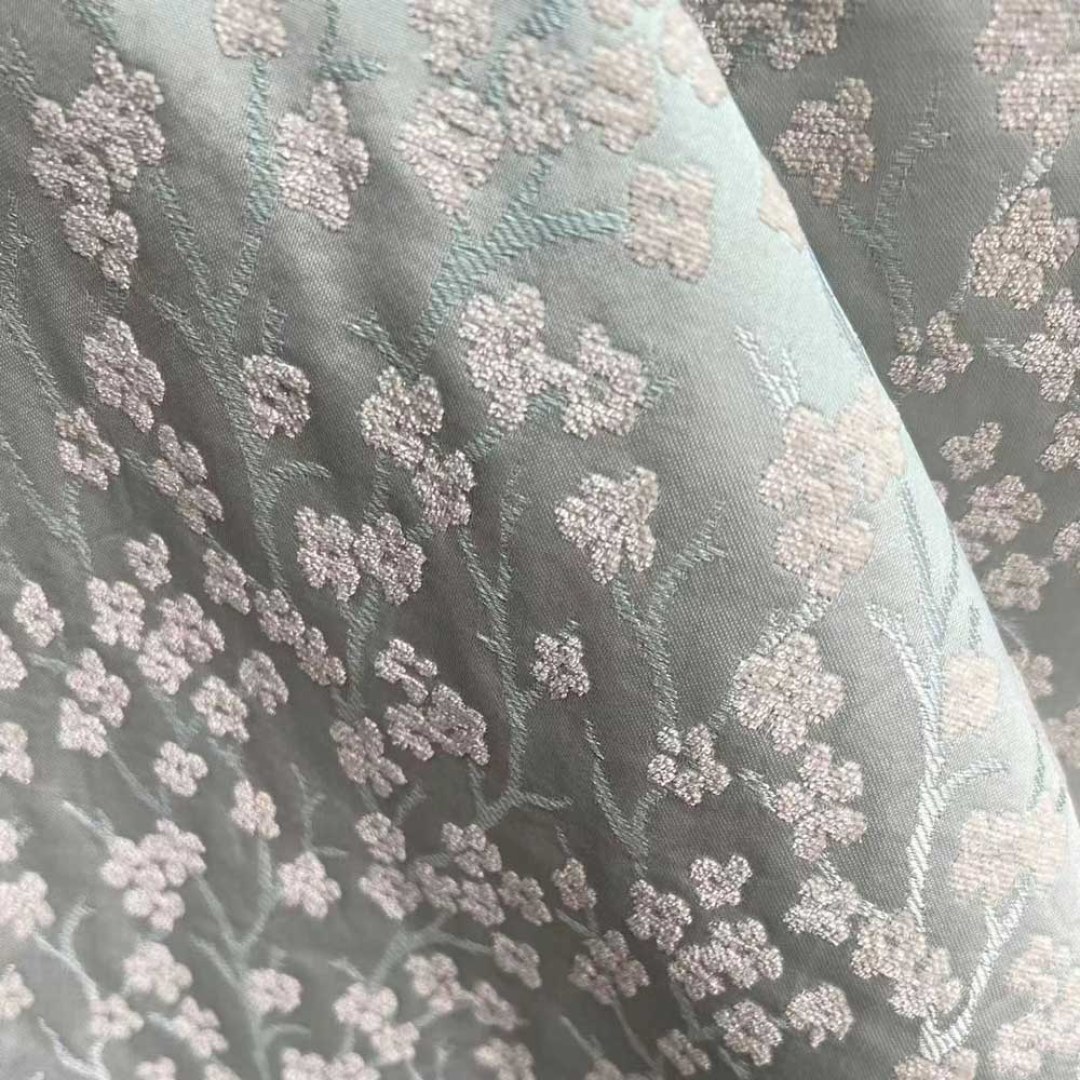 Cherry Blossoms Pastel Pink & Mint Green Floral Chenille Blackout Curtain
