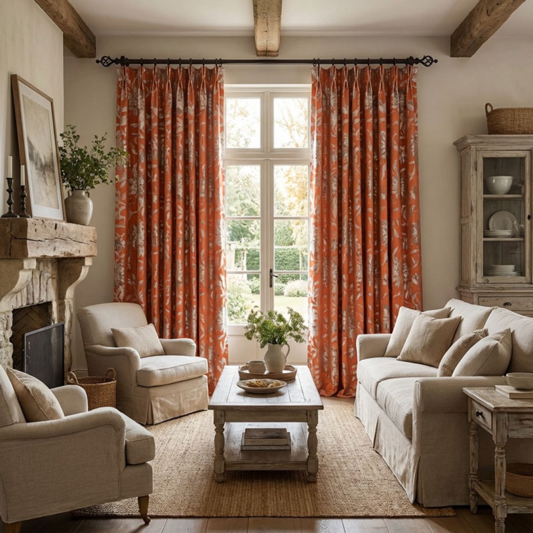 Blossom Tapestry Terracotta Orange Satin Floral Curtains