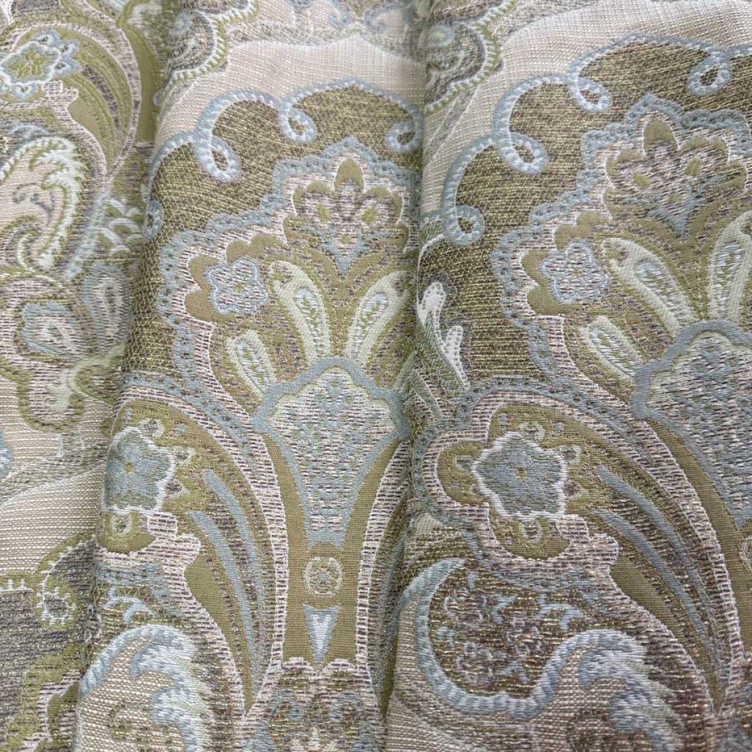 Regal Elegance Jacquard Cream and Olive Green Damask Curtain