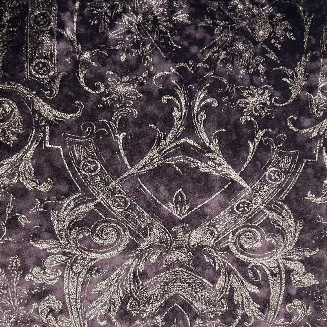 Heritage Luxury Dark Purple Gilded Damask Velvet Curtain