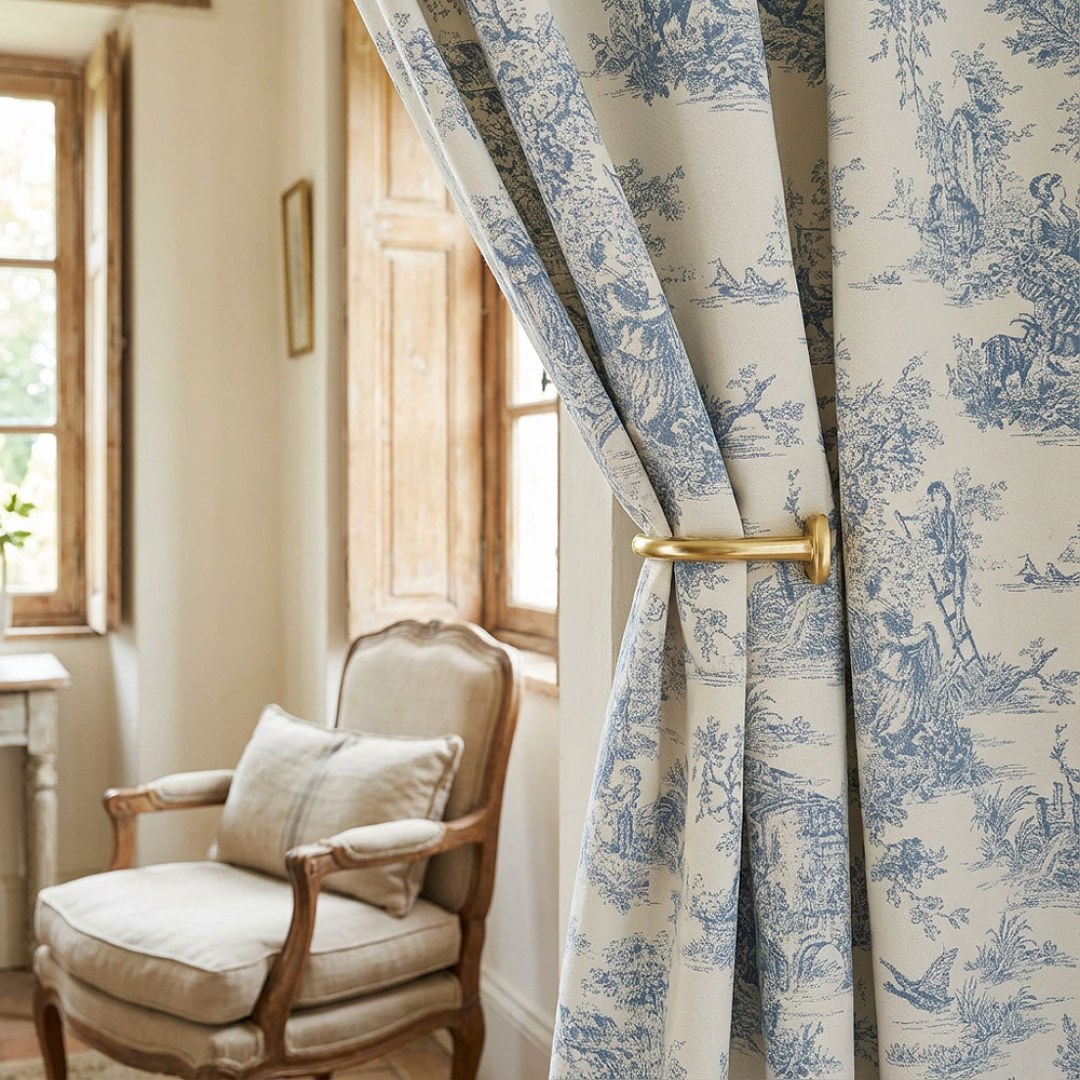 Amour Pastorale Blue Toile de Jour Chenille Curtains